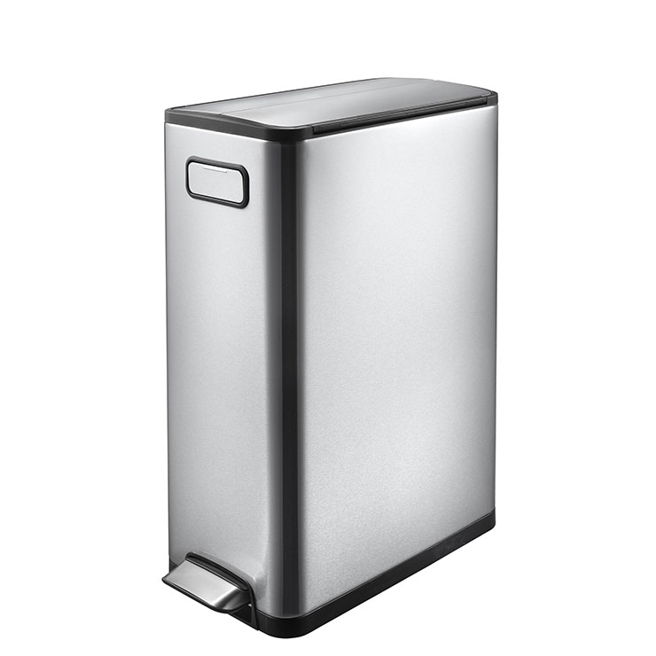 サイズ約幅27.5×奥行き53.2×高さ66.1cm(蓋開口時の高さ:77.8cm)容量45L重量約7.8kg材質ステンレススチール,ポリプロピレンブランドEKO生産国中国保証期間製造元保証1年間使用上の注意●ゴミ箱の上に物を置かないでください。●開いているフタは無理やり閉めないでください。サイズ約幅27.5×奥行き53.2×高さ66.1cm(蓋開口時の高さ:77.8cm)容量45L重量約7.8kg材質ステンレススチール,ポリプロピレンブランドEKO生産国中国保証期間製造元保証1年間使用上の注意●ゴミ箱の上に物を置かないでください。●開いているフタは無理やり閉めないでください。キッチンカウンターの下などにも置ける両開きのペダル式ゴミ箱フタを開けた時の高さを抑えた両開き開閉のペダル式ゴミ箱。キッチンカウンターの下など狭いスペースにも置きやすい高さです。幅のある1枚板のペダルは軽い踏込みで操作ができます。ペダルを離すとフタが静かにゆっくり閉まります。フタを開けっぱなしにできるロック機能付き。本体に内蔵された持ち手と下部にあるキャスターで簡単に引き出して移動できます。インナーボックスは汚れたら取り外して洗え、清潔に使えます。ゴミ袋をぴったりフィットさせることができる便利なバッグフィクサー付き。エコフライ ステップビンは45L、30L、20L、20L+20Lの4サイズ展開