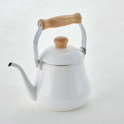 サイズ(約)W 21.5×15.0×21.5cm重量約837g満水容量(約)1.5L※吹きこぼれ防止のため、約60~70%の水位でご使用ください。材質本体:ほうろう用鋼板(鋼板の厚さ:約0.8mm)、ハンドル・蓋つまみ:天然木対応熱源ガスコンロ(直火)・IH(100V・200V)・シーズ・ハロゲン・ラジエント製造元富士ホーロー備考●タイ工場製(富士ホーロー 自社工場)●電子レンジ使用不可●日本琺瑯工業会認定S(200V IH)マーク取得ホーローについて●手作業で釉薬を掛けるため、ひとつひとつの表情には多少の個体差が生じます。●ホーローの性質上、焼成時に黒点や色むらの様に見える部位が生じる場合がございます。●鋼板の切り口となる部分は釉薬がかかりにくく、下地の黒いスジが多少見られますが黒い部分もホーロー加工が施されております。※上記の様な場合でも不良ではなくご使用には問題ございませんので安心してお使い下さい。●IH対応ドリップケトル 1.5L C-1.5DK温度を一定に保ちやすい、ホーローのドリップケトル注ぎ口が細長く、ゆっくり静かに注ぐことができるドリップケトルです。ガス火でもIHでもお使いいただけます。ホーローは保温性が良く、温度を一定に保ちやすいのが特徴です。また、表面はガラス質で金気が出ないので、美味しくコーヒーを淹れられます。本体の内側は紺色になっていて耐久性の良い耐熱水性釉薬仕上げです。フタにはズレ落ち防止のツメがついています。注ぐときに傾けてもフタが落ちにくいので安心してお使いいただけます。(ツメは注ぎ口の反対側にセットしてお使いください。)1.5Lケトルは2~3人分のお茶やコーヒーを淹れるのにちょうど良いサイズです。ハンドルと蓋つまみは熱くなりにくく、手になじむ天然木製。ホーローとの相性が良く、ナチュラルな雰囲気を演出しています。富士ホーロー ハニーウェア製品は、日本人スタッフの厳重な管理のもと、タイの自社工場でひとつひとつ丁寧に生産されています。主材のほうろう用鋼板(JIS規格)と釉薬は、ともに日本メーカーの材料を使い、完成した製品は一貫して高い品質を保っています。鍋は1mm、ケトルは0.8mmの鋼板を使用し、熱効率と堅牢性、及び軽量による使いやすさをバランスよく実現しています。 当サイト内の文章・画像等の内容の転載、及び複製等の行為を固く禁じます。