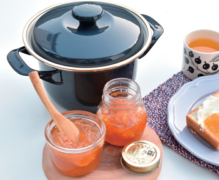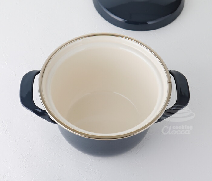●EXシリーズ ココット 16cm板厚1.8ミリのハイスペックなホーロー鍋創業73年の富士ホーローは高品質のほうろう用極低炭素鋼板を使用しております。その中でも1.8ミリ厚の「EXシリーズ」は、今までにない優れた熱効率と堅牢性を実現いたしました。同等サイズの鋳物製品と比べ約40%軽量で、キッチンでの取り回しや扱いやすさも重視。ガス火とIH調理器の両方で使え、さらにオーブン調理も可能なため料理のバリエーションが広がります。グラスライニング加工についてグラスライニング加工は、従来の琺瑯面と比較して、耐食性・耐酸性・耐アルカリ性に優れ、さらに表面硬度を強化する技術です。EXシリーズでは、通常の琺瑯面(内面カバーコート)の上にさらにPEMCO社製(ドイツ)の耐熱水性釉薬を施釉し、焼成することで内面を強化しています。本製品では、専用の内面釉薬色「シャンパンゴールド」を開発し採用しています。1.計算されたモダンなフォルムEXシリーズは富士ホーローが5年の歳月をかけ、形状にもこだわって開発しました。蓋裏について水滴は鍋の内側に戻るように作られているため水分を逃さず、蓋の乗る部分はふきこぼれしにくくなっています。コンパクトに見えつつも満水では2.1Lの容量を確保。特にハンドルは厚さ3mmの鋼板を使用し、ミトンをはめた手でもつかみやすく、機能性と同時にスタイリッシュさを追求しました。2.磁器製つまみを採用耐熱性が高く蓋をしたままでもオーブンで調理可能です。(ペインズグレーは無地つまみ)3.新開発のボディリングボディ本体の強度を向上し、端部のワレを防止する効果があります。4.ハンドルの滑り止め加工ハンドル裏に滑り止め加工を施し、より安全にご使用いただけるよう配慮しています。グラスライニング加工の優れた耐酸・耐食性鍋の左側のみグラスライニング加工をし、クエン酸6%溶液を8時間煮沸(JIS基準の3倍以上の時間)する試験を行いました。その結果、グラスライニング加工はこの条件下の酸による腐食に耐えることを証明しました。苛酷な試験においても通常の琺瑯面では失ってしまうツヤも、グラスライニング面では保ち続けています。良好な熱効率、ムラのない温度上昇ステンレス製の鍋と比較し、熱効率が良いため、早くムラなく温度が上昇します。ほうろう用鋼板は、IH調理器においても入力値が極めて高く、熱源のエネルギーを無駄なく取り込むことができます。少ないエネルギーで早く、素材の風味を活かした美味しい料理を楽しむことが出来ます。オーブンでほったらかし調理!ミニレシピ集付きEXシリーズの優れた熱効率を活かし、オーブンを使ってほったらかし調理が可能です。ほったらかし調理を中心としたレシピが11品掲載されたレシピ集付きで、すぐにEXシリーズの特性を活用した料理が始められます。ほったらかし調理ほったらかし調理とは予熱したオーブンに鍋ごと入れて時間をおき、保温庫として使う調理方法です。オーブンは150℃~180℃に予熱し、ほったらかしている間は電源をオフにします。省エネでありながら食材にしっかり熱が入ります。お出かけ前にセットし、帰ってきてすぐに出来立てを食べることができます。