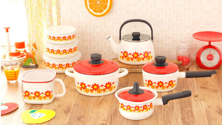 バリエーションサンフラワー FJ-16CF.SFサイズ約W17×D17×H7cm重量約300g満水容量約1.2L材質本体:ほうろう用鋼板、縁巻き:ステンレス、フタ:ポリエチレンシリーズメモリーズ製造元富士ホーローホーローについて●手作業で釉薬を掛けるため、ひとつひとつの表情には多少の個体差が生じます。●ホーローの性質上、焼成時に黒点や色むらの様に見える部位が生じる場合がございます。●鋼板の切り口となる部分は釉薬がかかりにくく、下地の黒いスジが多少見られますが黒い部分もホーロー加工が施されております。※上記の様な場合でも不良ではなくご使用には問題ございませんので安心してお使い下さい。備考●タイ工場製(富士ホーロー 自社工場)●日本琺瑯工業会認定Sマーク取得●電子レンジ使用不可●オーブン調理可(フタを外す)バリエーションサンフラワー FJ-16CF.SFサイズ約W17×D17×H7cm重量約300g満水容量約1.2L材質本体:ほうろう用鋼板、縁巻き:ステンレス、フタ:ポリエチレンシリーズメモリーズ製造元富士ホーローホーローについて●手作業で釉薬を掛けるため、ひとつひとつの表情には多少の個体差が生じます。●ホーローの性質上、焼成時に黒点や色むらの様に見える部位が生じる場合がございます。●鋼板の切り口となる部分は釉薬がかかりにくく、下地の黒いスジが多少見られますが黒い部分もホーロー加工が施されております。※上記の様な場合でも不良ではなくご使用には問題ございませんので安心してお使い下さい。備考●タイ工場製(富士ホーロー 自社工場)●日本琺瑯工業会認定Sマーク取得●電子レンジ使用不可●オーブン調理可(フタを外す)1970年代に人気を博した柄を復刻。昭和レトロ柄のホーロー調理器具シリーズ