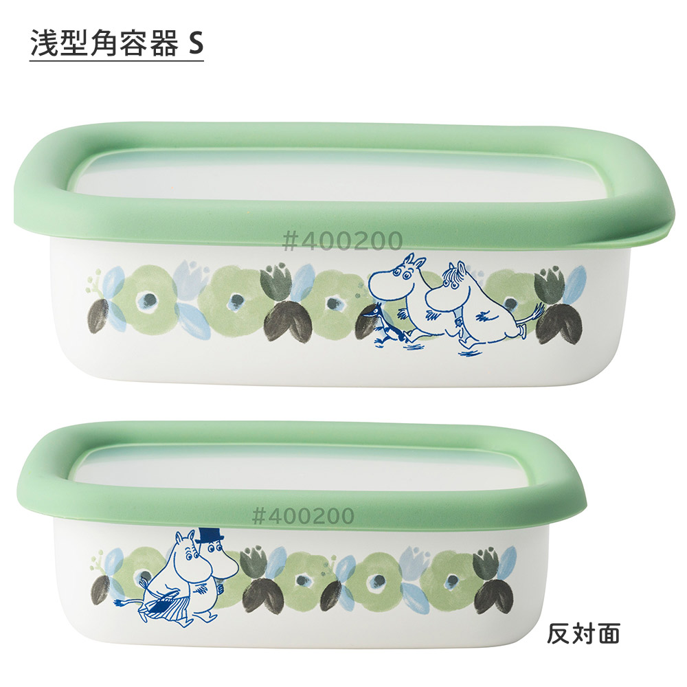 セット内容浅型角容器S MTH-S × 1個約W14.5×D10.5×H4.0cm / 約160g浅型角容器M MTH-M × 1個約W19.5×D14.0×H4.5cm / 約290g浅型角容器L MTH-L × 1個約W23.5×D17.0×H5.5cm / 約500g満水容量S:0.42L、M:0.9L、L:1.6L材質本体:ほうろう用鋼板、蓋:ポリプロピレン,エラストマーシリーズムーミン製造元富士ホーローホーローについて●手作業で釉薬を掛けるため、ひとつひとつの表情には多少の個体差が生じます。●ホーローの性質上、焼成時に黒点や色むらの様に見える部位が生じる場合がございます。●鋼板の切り口となる部分は釉薬がかかりにくく、下地の黒いスジが多少見られますが黒い部分もホーロー加工が施されております。※上記の様な場合でも不良ではなくご使用には問題ございませんので安心してお使い下さい。備考○タイ工場製(富士ホーロー 自社工場)○電子レンジ使用不可○日本琺瑯工業会認定Sマーク取得○フタを外してオーブン調理可ムーミンフラワーガーデンのカラフルな浅型琺瑯容器3点セット北欧風のお花とムーミンたちが楽しく料理を彩る、ムーミンフラワーガーデン。琺瑯は酸や塩分に強いため食材の保存に適しています。表面のガラス質は汚れがつきにくく、匂いうつりも少ないので、キムチなどの発酵性食品のほかさまざま食材のストックが可能です。また、耐熱性が高いためオーブンでの調理にも使えます。グラタンやパン、焼き菓子の型としてもおすすめです。フタは透明度があり中身が見やすく、縁がエラストマー製なので丈夫で破損しにくいので長持ちします。ホーロー容器の特徴●表面が硬く、すべすべしたガラス質なので雑菌が繁殖しにくく、衛生的です。●非吸着性が抜群で、容器にニオイがつきません。●ガラス質は中性で不活性。食品と化学反応を起こしにくいので風味を損ないません。●耐久性抜群ですので、オーブンや冷凍庫の保存にも使えます。●酸や塩に極めて強いので食品の保存容器に最適です。●コンロ(直火)やオーブン調理をすることができます。コンロで煮物などを保存した容器をそのまま火にかけて温めることができます。オーブンでグラタンやラザニア、焼き菓子など容器を調理器具として使用できます。※コンロで使用する場合、炒める・炒るなど水分をほとんど使わない調理をすると表面のガラス質が破損する場合があります。※カレー、シチューなどは水分が少ないので、かき混ぜながら加熱してください。