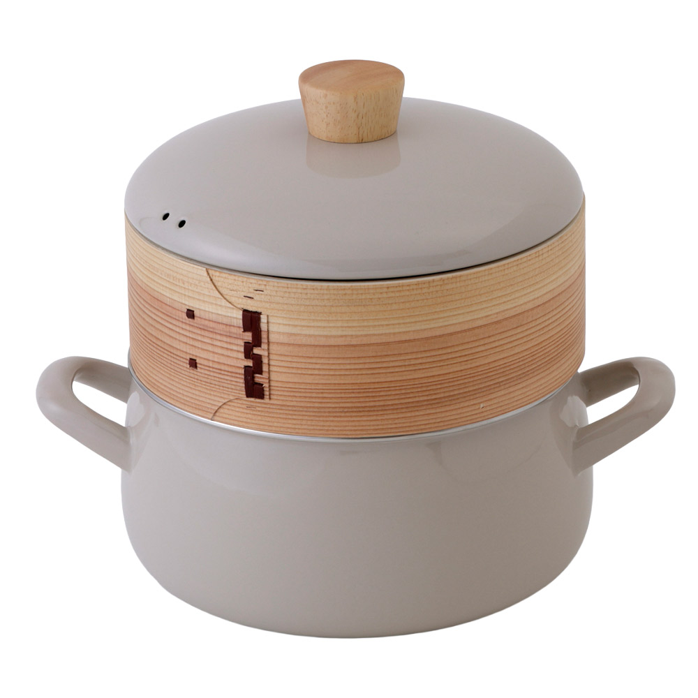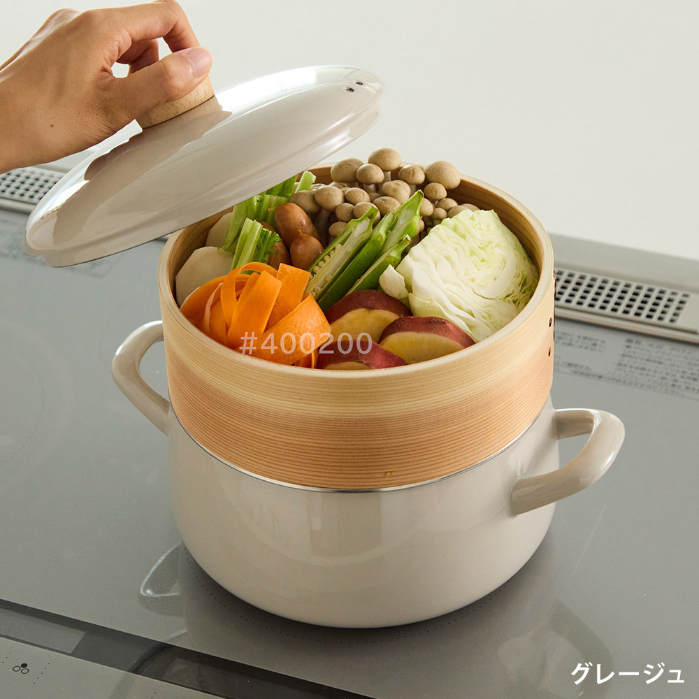 サイズ鍋:W28.0×D21.0×H22.5cm / 約1430gせいろ:W20.0×D20.0×H7.5cm / 約210g容量満水容量 2.9L(使用目安 7割程度の水位でご使用ください。)材質本体,蓋:ほうろう用鋼板(底の厚さ 1.0mm)、ステンレスリング巻き蓋つまみ:天然木せいろ:天然木(竹)メッシュシート:シリコーンゴム対応熱源ガスコンロ(直火),IH調理器(100V/200V),シーズ,ハロゲン,ラジエント生産国鍋:タイ、せいろ:中国製造元富士ホーローホーローについて●手作業で釉薬を掛けるため、ひとつひとつの表情には多少の個体差が生じます。●ホーローの性質上、焼成時に黒点や色むらの様に見える部位が生じる場合がございます。●鋼板の切り口となる部分は釉薬がかかりにくく、下地の黒いスジが多少見られますが黒い部分もホーロー加工が施されております。※上記の様な場合でも不良ではなくご使用には問題ございませんので安心してお使い下さい。備考○電子レンジ使用不可○鍋本体のみ食洗機使用可サイズ鍋:W28.0×D21.0×H22.5cm / 約1430gせいろ:W20.0×D20.0×H7.5cm / 約210g容量満水容量 2.9L(使用目安 7割程度の水位でご使用ください。)材質本体,蓋:ほうろう用鋼板(底の厚さ 1.0mm)、ステンレスリング巻き蓋つまみ:天然木せいろ:天然木(竹)メッシュシート:シリコーンゴム対応熱源ガスコンロ(直火),IH調理器(100V/200V),シーズ,ハロゲン,ラジエント生産国鍋:タイ、せいろ:中国製造元富士ホーローホーローについて●手作業で釉薬を掛けるため、ひとつひとつの表情には多少の個体差が生じます。●ホーローの性質上、焼成時に黒点や色むらの様に見える部位が生じる場合がございます。●鋼板の切り口となる部分は釉薬がかかりにくく、下地の黒いスジが多少見られますが黒い部分もホーロー加工が施されております。※上記の様な場合でも不良ではなくご使用には問題ございませんので安心してお使い下さい。備考○電子レンジ使用不可○鍋本体のみ食洗機使用可竹製せいろがセットになったホーロー鍋竹製せいろがセットになったホーロー鍋。食材のこびり付きを防ぐシリコーンメッシュシートが付属しています。蒸気で加熱することにより、食材本来の味が際立ちます。素材の天然木と竹が調理中の余分な水気を適度に吸収し、蒸気が食材をやさしく包み込むように、ふんわりと蒸し上げます。本格的な蒸し料理をお楽しみいただけます。食材の下に、本品に付属のメッシュシートや、市販のクッキングシート、葉物野菜等を敷くと、取り出しの際に食材のこびり付きを防止できます。付属のメッシュシートは洗って繰り返しご使用いただけます。せいろをセットしないで通常の両手鍋としても使用できます。カレーやシチューなどの煮込み調理や茹で調理などに適しています。均一な熱伝導により、料理をムラなく美味しく仕上げます。4人分程度のスープやシチューを作るのに十分な容量です。食卓にそのまま出してもかわいいデザインです。ガラス質のホーローは食材のニオイ移りや色移りを気にせず調理することができます。また金属イオンが発生しないため、食材の風味を損ねることなく美味しく仕上がります。心材が鉄なので、ガス火でもIH調理器でも、熱効率よく調理できます。弱い火力で煮込むことができるので経済的です。コンパクトなハンドルなので、フタを外してオーブンにも入れられます。