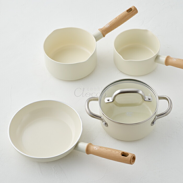 型番CC002726-001材質本体:アルミニウム合金、ハンドル:フェノール樹脂サイズ本体:約 幅 31.8×奥行 15.8×高さ 10.6cm重量約435g対応熱源IH調理器(100V/200V)、ガス火ブランドGREENCHEF備考●生産国 中国●PFAS、PFOA、鉛、カドミウム不使用●食洗機使用可●180℃までのオーブン調理可能●グリーンシェフ ビンテージホワイト ソースパン14cmグリーンシェフは、ベルギーで生まれた簡単にヘルシーな料理を作れるようにデザインされた調理器具です。プレミアムな材質を使って、高い調理性能とヘルシークッキングのためのテクノロジーを盛り込み、ルックスはミニマムで洗練されたヨーロッパデザイン。サーモロン セラミック ノンスティック コーティングのおかげで料理はノンスティック=くっつかずお手入れが簡単。PFOA、鉛、カドミウム100%不使用と、ヘルシーさを大切にする人のベストチョイスです。クリームホワイトの本体に木目調ハンドルがやさしい雰囲気のビンテージホワイトシリーズ。サーモロン・ノンスティック・セラミック・コーティングにダイヤモンドを配合して耐久性をアップ。有害物質が一切含まれておらず、ほとんど砂と同じミネラル成分で作られているので、熱し過ぎても有毒ガスを排出せず、安心して調理ができます。ダイヤモンドコーティングは熱伝導、蓄熱率に優れているため、食材が外はカリっと、中はジューシーに仕上がります。焼き面が白いので、調理の様子がわかりやすく便利です。ハンドルは人間工学に基づいて設計され、持ちやすく、熱くなりません。おしゃれで実用的な調理器具です。底厚形状で蓄熱性が高く、食材の中までしっかり火が入ります。アルミに直接IHに反応する金属の粉末と熱伝導率に優れている銅を加えてアルミ本体の底部に高圧注入することで底面が歪まずに熱がムラなく伝わります。また、軽量化にも貢献しています。食洗機でお手入れ可能です。(洗い残りは焦げ付きの原因となりますので、ご注意ください。)