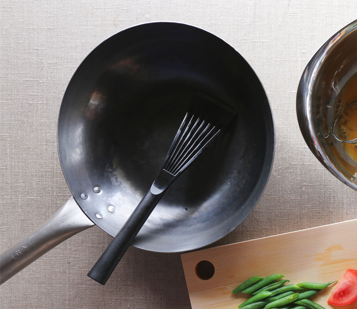 材質本体:鉄(SPHC熱延鋼板)、柄:チタン、リベット:鉄サイズ全長 39cm、鍋径 24cm深さ 最浅/4.5cm、最深/8cm板厚 1.2mm商品重量603g対応熱源ガスコンロ(直火)専用ご使用についてご利用いただく前に●初めてのご利用前には、洗剤で表面のオイル(椿オイル)を洗い流してからご使用ください。●お湯でスポンジ、たわし等を使用し洗ってください。(金たわしはお避け下さい。)●中火~強火で十分に熱し、油を引いてくず野菜を鍋全体を使って炒めてください。●くず野菜を捨て、もう一度洗ってください。(野菜が黒ずみ鍋肌も黒くなることがありますがこれは鉄の酸化物でお身体に害はありませんのでご安心ください。)毎回ご使用いただく前に●鍋をコンロにかけ中火で充分温めます。鍋全体に油を馴染ませると熱伝導が均一になり食材が焦げ付きにくくなります。●油を大さじ2杯ほど入れて、鍋の表面全体に馴染ませます。●油が熱くなり、十分に馴染んだら、余分な油を別に移して調理を始めてください。●火傷には十分ご注意ください。お手入れ方法●調理が終わりましたら、鍋に少し余熱が残っているうちにお湯を使い、ささらやたわし等で洗ってください。(金たわし等は不向きです。)●焦げ付いた時は、お湯を入れてしばらく煮立たせ「焦げカス」を柔らかくしてから落としてください。●洗った後は、水分を完全にふき取り、必ず油を引いて保管してください。裏面にも薄く引いてください。 調理後の油引きが、次の調理での焦げ付きを防ぎ保管時の錆を防ぎます。●錆が出たときは、粒子の細かい紙ペーパーで擦っていただくと表面を傷めずに錆取りが出来ます。錆取り後は油を馴染ませてください。ご購入の前に本商品は製造元にて品質検品を行っております。お届けする品により、製造工程上の小さいキズ・鍋表面の色の違い・大きさ・厚み等が異なりますが品質上及び使用上も問題ありません。安心してお使いください。また、チタンのハンドルは、作業上やむを得ないキズ(10本程度のスジやキズ)が付きます。商品の趣き風合いとして研磨等の加工は施しておりませんのでご了承頂きますようお願い致します。製造山田工業所備考●日本製●HANAKO 炒め鍋 24cm H-24日本で唯一の打ち出し製法で作られている、山田工業所の家庭用フライパン HANAKOシリーズ。山田工業所は業務用フライパンを作り続けて半世紀以上、横浜中華街でのシェア率80%を誇り多くのプロに長年愛されています。打ち出し製法はプレスにより型抜きされた鉄板を5000回以上叩き上げて薄く延ばしていくことによって、鉄が絞まり軽くて、強くなります。酸化しにくく、サビに強いという特徴もあります。プレスしただけのフライパンと比べ、鉄取りがすくないので軽く仕上がっています。ハンドルも軽量で熱くなりにくいチタンを使用しています。振ることが多い炒め鍋にはうれしい設計です。また、打ち出し製法により表面の鍋肌に細かな凸凹ができ、油ののりやなじみが良くなり、食材が焦げ付きにくくなります。本体は深めで傾斜がついており、炒め物が返しやすい形になっています。焼くことはもちろん、煮る、揚げる、蒸すなどの調理も可能で、幅広い料理に対応できる万能鍋です。