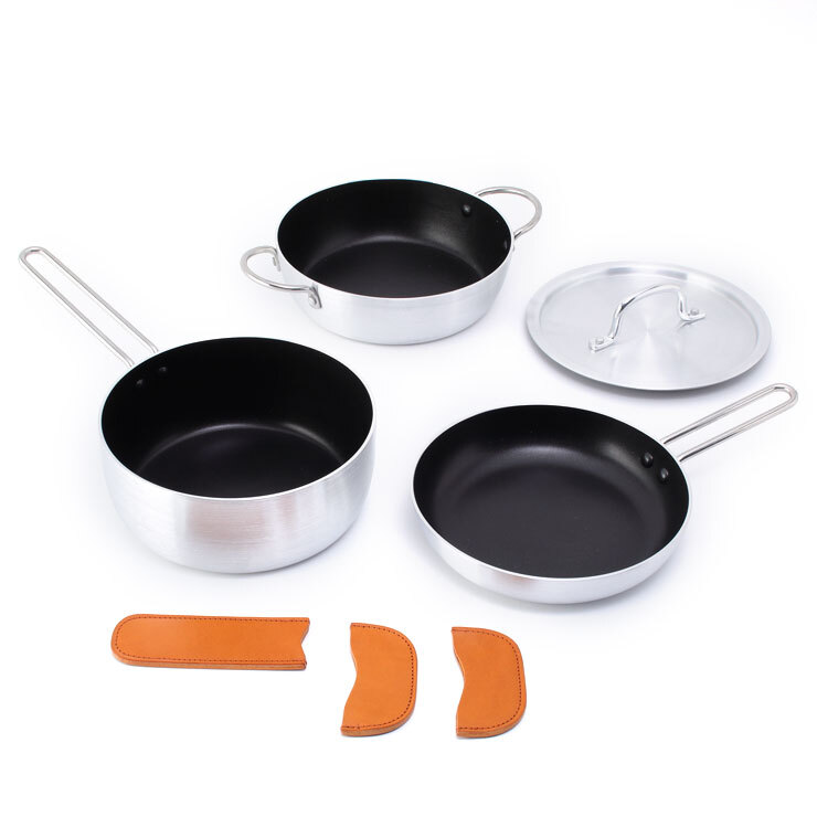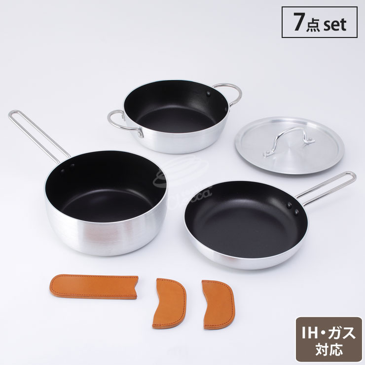 セット内容●18cmフライパン約全長29×奥行18.5×高さ7.0cm、深さ3.9cm、底厚3mm358g / 満水容量:0.9L●18cmユキヒラ約全長31×奥行18.2×高さ11.4cm、深さ7.4cm、底厚3.1mm518g / 満水容量:1.7L●18cmキャセロール約全長26.5×奥行18.8×高さ5.6cm、深さ5.4cm、底厚3.1mm448g / 満水容量:1.3L●18cmアルミ蓋約縦21×横21×高さ4.2cm、140g●両手用レザーミトン×2●片手用レザーミトン材質●フライパン,ユキヒラ,キャセロール本体:アルミニウム合金、内面:ふっ素樹脂塗膜加工、外面:サテン仕上げ底面:ステンSUS板圧着、ハンドル:ステンレス●アルミ蓋本体:アルミニウム合金、内面:ふっ素樹脂塗膜加工、外面:サテン仕上げ●ミトン牛革対応熱源ガスコンロ(直火),IH調理器(100V/200V),シーズ,ハロゲン,ラジエント,オーブン(260℃まで)製造元北陸アルミニウム生産国調理器具:中国ミトン:日本できたて料理をそのまま食卓へ、器として使う調理器具丈夫なステンレス製のワイヤーハンドルでさまざまな熱源に対応できたて料理をそのまま食卓へ、器として使う調理器具。調理器具と兼用蓋、ハンドルや蓋つまみに装着できるレザーミトンの7点セットです。朝食つくりなどに便利なフライパン、汁ものや煮物の調理にはユキヒラ、グラタンなどのオーブン調理にちょうどよいキャセロールを。スタイリッシュなワイヤーハンドルは、そのまま卓上に並べても食卓の雰囲気を損ないません。ガス火はもちろんIHクッキングヒーターでも使用でき、家でも外でも様々なシーンで活躍する調理器具セットです。内面ふっ素コーティングで、後洗いもラクラク内面に施されたふっ素樹脂塗膜加工は、食材がこびりつきにくくお料理がキレイに仕上がります。使用後は、サッと洗い流すだけで汚れが落ちるので、後洗いがとってもラクになります。上質な国産革のミトン着脱式のレザーミトンが、卓上への持ち運びやオーブンから取り出す際に便利です。取っ手が熱くなっている時は勿論、滑りにくくサービングできます。片手ハンドル用のミトンが1つ、両手ハンドル用のミトンが2つ付属しています。両手ハンドル用のミトンは蓋のつまみにも装着できます。経年変化が楽しめるレザーミトンは国内外で評価の高い栃木レザーを使用した日本製。アルミ兼用蓋が1個付き蒸し焼きや煮込みなど、蓋を使うと料理の幅が広がります。熱が逃げにくく、時短調理にも。軽くて扱いやすいアルミ製。内面はふっ素コーティングでこびりつきにくく、後洗いも簡単になります。フライパン、ユキヒラ、キャセロールで兼用できます。様々な熱源で使える熱まわりと保温性のバランスに優れた特性の厚板仕様。本体底面に磁性体を貼り付け、電磁調理器からガスコンロまで全ての熱源に対応。ステンレス製の丈夫なワイヤーハンドルは、オーブンにも入れられるのいろいろな調理に対応できます。耐久性の求められる業務用調理器具の工場にて製造されています。アウトドアシーンでもバーベキューコンロで使用してもステンレス製の丈夫なハンドルは変形する心配なく、安心して調理できます。また、本体とのバランスが取れたハンドルは野外の不安定な調理シーンでも活躍します。 9,350円税込 獲得マイル: --- (還元率: --- 倍) 入荷案内申し込み カートに入れました 購入手続きへ お買い物を続ける 9,350円税込 送料無料 獲得マイル: --- (還元率: --- 倍) 獲得マイル内訳 マイルの内訳 合計獲得マイル: --- マイル 内訳 通常マイル --- マイル キャンペーンボーナスマイル --- マイル マイルアップ商品ボーナスマイル --- マイル ※マイルの計算方法や、条件・上限について マイル全般に関するご注意 ご購入前の画面で表示される合計獲得マイルは、各キャンペーンの獲得条件に基づいて表示しており、倍率とマイル数が合わない場合があります。また、キャンペーンによってマイルが一部未反映の場合があり、実際に獲得できるマイルと異なる可能性があります。ボーナスマイル数やマイル積算時期等、詳しくは各キャンペーンページの注意事項を必ずご確認ください。 ANAカードマイルプラスの積算マイル数は表示されないためご注意ください。 プレミアムメンバー・スーパーフライヤーズ本会員限定ライフソリューションサービスボーナスマイルの積算マイル数は表示されないためご注意ください。 キャンペーンによって参加登録が必要な場合があります。参加登録が必要な場合、参加登録がないと各キャンペーンの対象外になりますのでご注意ください。また、参加登録は、ご購入前に参加登録が必要な場合と、ご購入後の参加登録でも対象になる場合があります。 マイル積算までに「ANAマイレージクラブ」または「ANA Mall」を退会された方は積算対象外になります。 商品ご購入後に返品またはキャンセルされた場合は、マイル積算の対象外になります。 ゲスト購入の場合はマイル積算の対象外になります。 詳しくはマイルについてのご案内ページをご確認ください。 お届け先の都道府県 北海道青森県岩手県秋
