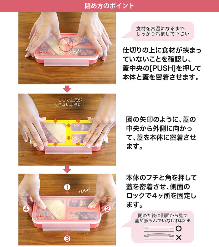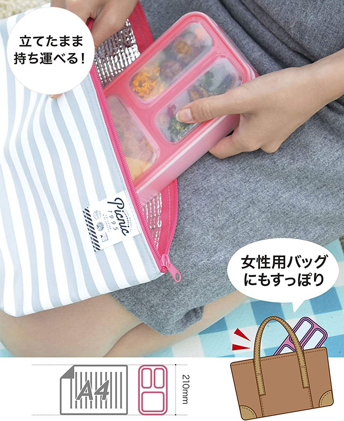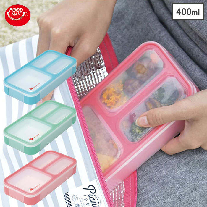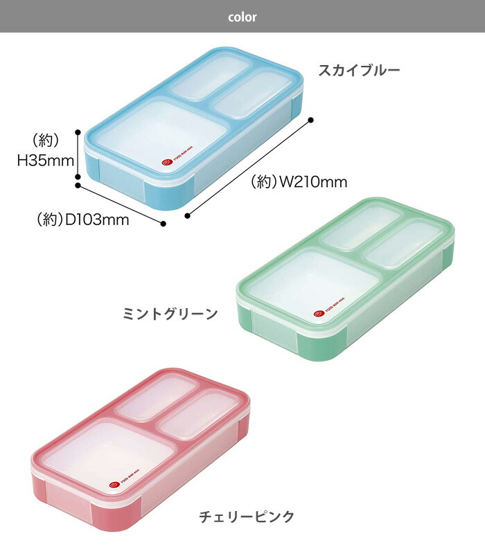 サイズ(約)W210×D103×H35mm重量約215g満水容量0.4L材質[本体]ポリプロピレン、[パッキン]SEBSブランドdsk.pig製造元CB JAPAN備考●中国生産●本体のみ電子レンジ、食洗機OKサイズ(約)W210×D103×H35mm重量約215g満水容量0.4L材質[本体]ポリプロピレン、[パッキン]SEBSブランドdsk.pig製造元CB JAPAN備考●中国生産●本体のみ電子レンジ、食洗機OK●薄型弁当箱 フードマン ミニ 400カバンの中で立てて持ち運べる、画期的な薄型弁当箱長財布サイズでスッキリ持ち運べる400ml。A4サイズの書類とぴったり幅で、厚みはわずか3.5cm。バッグの中の書類やノートと同じ幅なので、通勤通学時の持ち運びがスマートに。しっかり固定の4点ロックで安心。パッキンも一体型なので、洗うときも楽々です。内側はホワイトカラーでおかずの色も映えるので、お弁当を写真に記録したい方にもおすすめです。フードマン独自のシーリング方法で味移りや汁もれ防止一体型の仕切りにもパッキンするので、お弁当内での味移りはもちろんのこと、お弁当の外への汁もれも防ぎます。スマートに持ち運ぶことに特化した薄型弁当箱です。