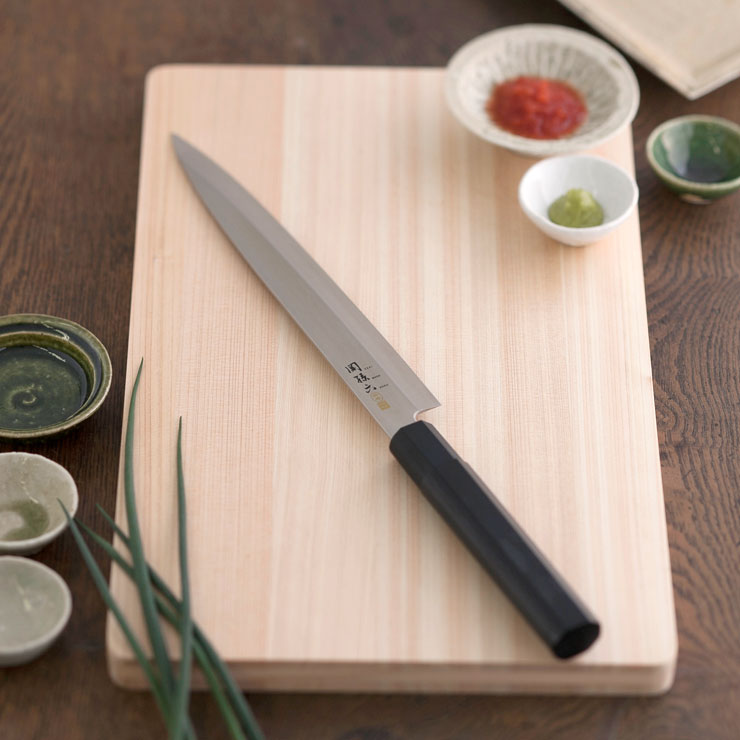 サイズ全長385×刃幅34×柄の高さ20mm刃渡り240mm、板厚2.5mm重量153g材質刃体:ステンレス単層材(刃材:ハイカーボンMVステンレス刃物鋼)(刃付け形状:片刃付け)口金:ナイロン、柄:積層強化木製造元貝印ブランド関孫六生産国日本硬度と強度に優れた「モリブデンバナジウムステンレス刃物鋼」使用シリーズ。鋭い切れ味と耐久性を持ち合わせ、サビにくく、お手入れが簡単です。刃体硬度と強度に優れた「モリブデンバナジウムステンレス刃物鋼」を使用。高硬度の鋼材を採用することで、鋭い切れ味や耐久性の向上、そしてサビにくさを実現しました。刃付け伝統の本格刃付けで、切れ味が抜群です。お手入れしやすい刃先になっています。口金刃体は樹脂との同時成型により刃と口金部の境目に隙間がないため、耐久性が高く、衛生的です。柄(ハンドル)強度に優れた積層強化木を使用し、フィット感の高い「積層強化木八角ハンドル」。天然木に特殊加工を施し、木の良さを活かしつつ、水に強い仕上げになっています。刃元部分の角を落とすことで指当たりも良く仕上げています。匠の知~柄の高級感と、こだわりの手当たり~鎌倉時代に九州から関(美濃)に移り住んだ刀鍛冶が、良質の土、水、炭に恵まれたこの地で、刀剣作りをはじめたのが関鍛冶の起源です。多くの名刀が生まれましたが、名匠「関の孫六」は独特の作刀を工夫し、美しく芸術性の高い、切れ味の抜群な最上の業物を世に送り出しました。江戸から明治と時代は変遷し、関の刀匠たちの多くが家庭用刃物の製造へと転業しました。関の刀剣が「折れず曲がらず、よく切れる」と称賛された信念は、現代の刃物作りにもしっかりと受け継がれています。本製品「関孫六」の銘は27代目兼元、刀匠金子孫六氏によるもので、匠の技を生かしながら、その切れ味を現代に伝えています。