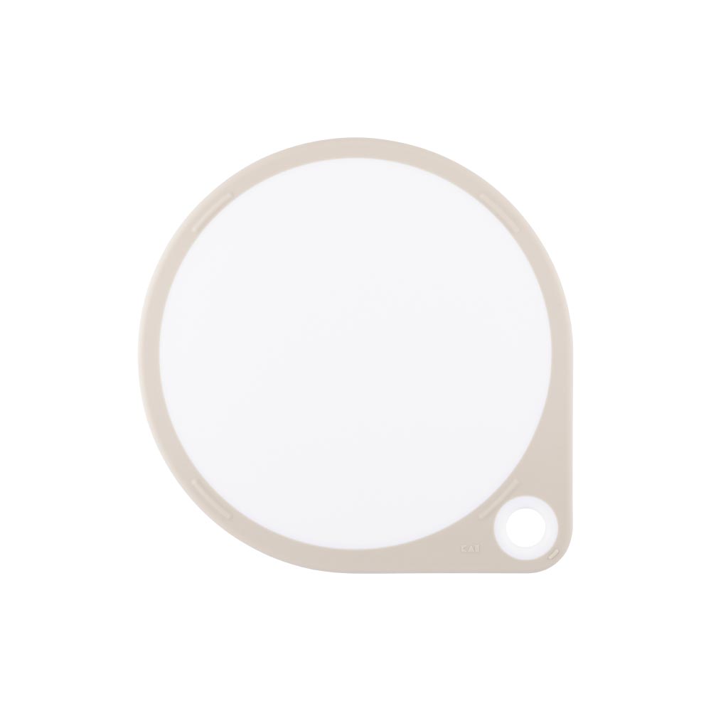 サイズ約290×250×10mm材質本体:ポリプロピレン(耐熱温度100℃)縁部:熱可塑性エラストマー(耐熱温度100℃)重量約372g製造元貝印生産国台湾奥行きたっぷりのひろい作業スペースが魅力なまるいまな板奥行きたっぷり、ひろく使えるまるいまな板。複数の食材の下ごしらえも、まな板上で行うことができ、洗い物も軽減できます。また直線部分を設けることで転がりにくく倒れにくい、立てかけ収納が可能な形状になっています。裏表で異なる表面加工が施されているため、表面では野菜を切り、裏面では肉を切る、というように使い分けることができます。全周をエラストマーで覆っているため、軽くてもまな板が滑りにくく、食材を切る際のストレスが軽減されます。食洗機対応なので、お手入れしやすく清潔にお使いいただけます。