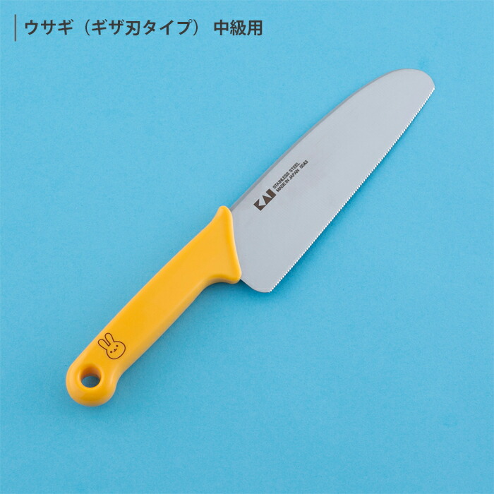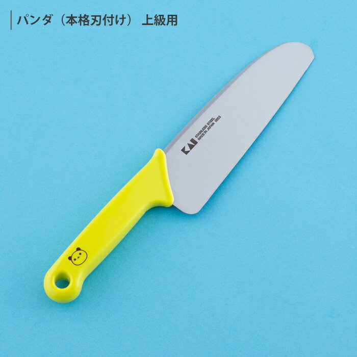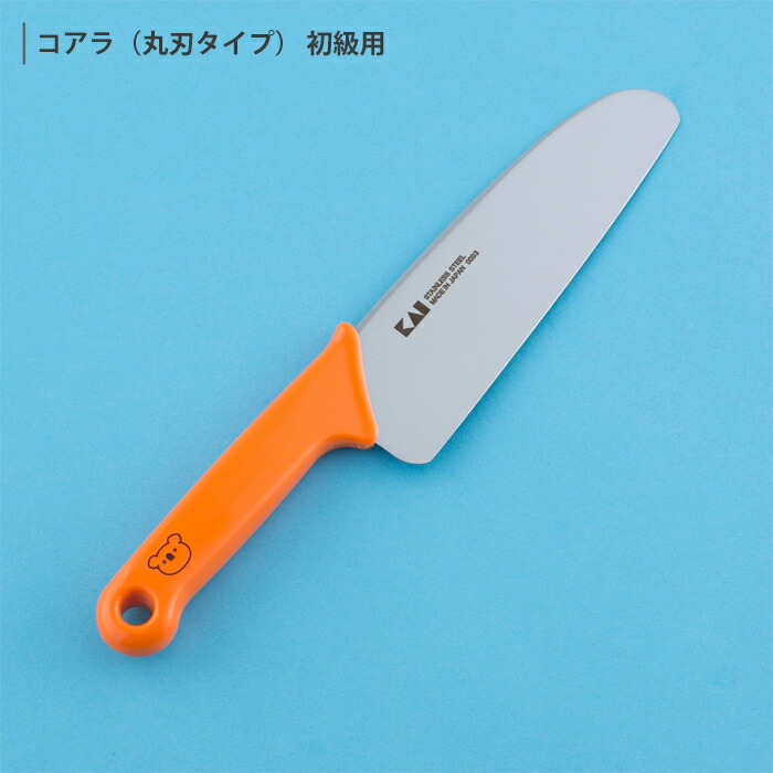 バリエーションコアラ(丸刃タイプ) 初級用 FG5002ウサギ(ギザ刃タイプ) 中級用 FG5001パンダ(本格刃付け) 上級用 FG5000サイズ全長219×刃幅42×柄の高さ15mm刃渡り125mm、板厚1.5mm重量(約)59g材質刃部:ステンレス刃物鋼、柄:ABS樹脂(耐熱温度80度)ブランド貝印生産国日本備考大人が使い方を教え、一緒に調理をしてください。バリエーションコアラ(丸刃タイプ) 初級用 FG5002ウサギ(ギザ刃タイプ) 中級用 FG5001パンダ(本格刃付け) 上級用 FG5000サイズ全長219×刃幅42×柄の高さ15mm刃渡り125mm、板厚1.5mm重量(約)59g材質刃部:ステンレス刃物鋼、柄:ABS樹脂(耐熱温度80度)ブランド貝印生産国日本備考大人が使い方を教え、一緒に調理をしてください。お子様でもお手伝いが楽しくなるリトルシェフクラブシリーズ 子供包丁子供の手に合う小さめのハンドル、丸い刃先の安全な仕様です。●コアラ 初級用まる刃は、ギザも研がれた刃も付いていないので安全です。一番の初級用で、柔らかいものをトントン切って、楽しくお料理をスタートしてください。(固い物は切ることができません。)●ウサギ 中級用ギザ刃は、先のギザギザで食材を切る中級用の包丁です。●パンダ 上級用本格刃付きの上級者向け包丁です。きちんと切れるので、皮むきや薄切りなどの練習にぴったりです。