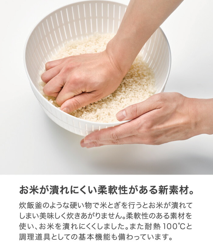 サイズザル:(約) φ227×H104mmボウル:(約) φ233×H107mm材質ザル:ポリプロピレン、熱可塑性エラストラマーボウル:ポリプロピレン重量ザル:(約) 135gボウル:(約) 220g商品説明●水切れの良さにこだわったザル●お米が潰れにくい柔軟性がある新素材●米とぎだけでなく、冷水でしめたり、湯引き、冷蔵庫でも保存など様々な調理に使うことができます製造like-it (ライクイット)生産国日本 like-it (ライクイット) like-it (ライクイット) 米とぎにも使えるザルとボウルセットで使えて調理の幅が広がる米とぎにも使えるザルとボウル
