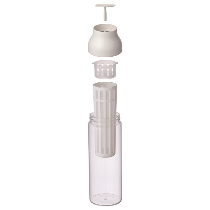 サイズφ85×H270mm重量522g材質耐熱ガラス、ABS樹脂、シリコーン、PP、PETブランドKINTO生産国中国商品説明●コルドブリューカラフェのみ細かいメッシュフィルター付きで、美味しい水出しのコーヒーやティーが手軽に作れます●傾けると自然に蓋が開き、360度どの方向からも注ぐことができます●冷蔵庫のドアポケットに収まるスリムなサイズ●ボトルは耐熱ガラスを使用しているため、匂いや色がつきにくく衛生的備考【容量】1L●食洗機使用可 ※ボトルのみ電子レンジ対応 ●KINTO(キントー)CAPSULE コールドブリューカラフェ360°どの方向からも注ぐことができるカラフェ冷蔵庫から取り出してグラスに注ぐまでの動作を片手でスムーズに行えます。冷蔵庫のドアポケットに収まるスリムなサイズ。ボトルは耐熱ガラス製なので、匂いや色がつきにくく衛生的です。目が細かいメッシュフィルター付きコールドブリューカラフェは、目が細かいメッシュフィルター付きなので、水出しコーヒーやティーが手軽に作れます。※写真はウォーターカラフェのステンレスカラーです。
