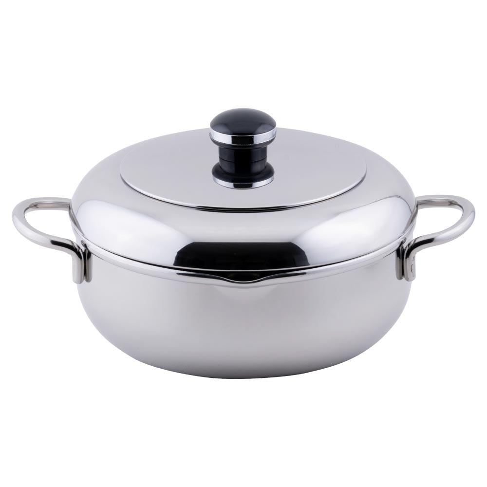 サイズ幅30.1×奥行23.4×高さ(蓋つまみまで)16.0cm、深さ8.9cm満水容量3.0L重量約1200g材質本体:18-10ステンレス,鉄芯,18-10ステンレス(全面鉄芯三層鋼)蓋,ハンドル:18-8ステンレスつまみ:フェノール樹脂対応熱源ガス、電磁調理器 (IH 100V・200V)、ハロゲンヒーター、クッキングヒーターシリーズObjet製造元宮崎製作所生産国日本製備考○ 電子レンジではご使用いただけません。熱伝導がよく、保温性に優れた全面三層鋼を採用した天ぷら鍋熱の伝わりが良く、保温性に優れた全面三層鋼を採用しています。油よけフードは調理中の油はねを抑えてくれます。本体にはオイルポットなどに油を移す時に便利な注ぎ口付き。ステンレス製なので保温力に優れ、油の状態も一目でわかり、お手入れも簡単です。IH調理器でも使え、きれいに安全に料理を楽しめます。