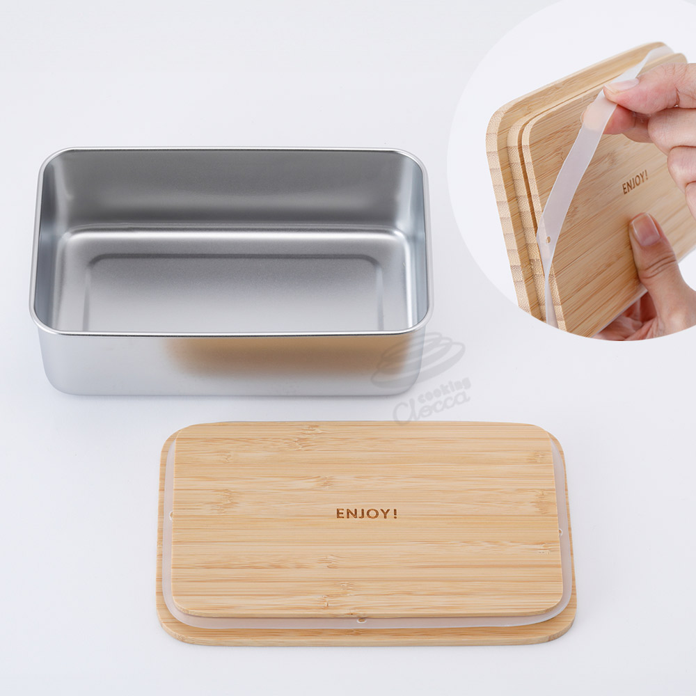 サイズ約11.4×18.1×6.3cm容量950ml重量約347g材質本体:SUS304、フタ:天然木(ウレタン塗装)、パッキン:シリコーンゴム製造元ののじ生産国中国備考○ 本体のみ電子レンジ&食洗機OK○ フタは電子レンジ&食洗機使用不可電子レンジで温め直しできるステンレスランチボックス電子レンジで加熱できるステンレスランチボックス。エシカルな時代性とデザイン性を兼ね備えたお弁当箱。持続可能な社会の実現が必要とされる中、プラスチックを使い捨てない・長く使えるお弁当箱は、健康志向の高い消費者のライフスタイルにぴったり。耐久性、耐食性に優れた18-8ステンレスの本体と、耐水加工天然木(ウレタン塗装)の蓋にシリコーンパッキンをセット。18-8ステンレスは色やニオイが移りにくく、油汚れも落としやすい素材です。本体は食洗機でのお手入れにも対応しています。フタは調湿効果がある天然木を採用。ごはんの湿気をほどよく吸収してくれるので、ごはんがおいしいままの状態が続きます。シルバーとホワイトは竹、ブラックはアカシア材を使用しています。学校や職場でのランチタイムに、毎日安心してお使いいただけます。● 耐久性・耐食性に優れた18-8ステンレスを採用。色やニオイが移りにくく、油汚れも落としやすい!● プラスチックフリー!環境にやさしく長く使い続けられる● 蓋をはずせば、電子レンジ&食洗機OK!