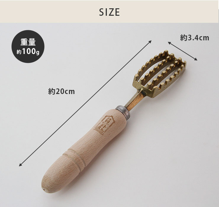 サイズ全長:200mm、幅:34mm重量100g材質刃先:真鍮、ハンドル:朴木シリーズさかなクンプロデュース「魚君」生産国日本(岐阜県関市)備考●食器洗浄機、乾燥機はお使いいただけません。さかなクンプロデュース企画キッチングッズシリーズ「魚君(ウオキミ)」魚君の第一弾は柳刃包丁、出刃包丁、キッチンバサミ、鱗取り、骨抜きの5種。魚を刺身にするまでの一連の作業がこの5種の調理器具で完成します。本体の刃先で表面をなでるようにして使うウロコ取り。魚の奥側のウロコは先端部分の刃先を使うことで丸みががった部分のウロコもキレイに取れます。上手に鱗を取るためのポイントは、本体を使って完全にウロコを取ること、魚の身を傷つけないように力を入れすぎないことです。