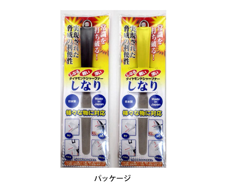 材質ヤスリ:ステンレス刃物鋼にダイヤモンド電着加工フック,口金:ステンレススチールハンドル:ポリプロピレン(耐熱温度90℃)サイズ約213×23×12mm重量約27g製造元サンクラフト生産国日本お手軽簡単、面倒な包丁研ぎがこれ一本でできる、ハンディシャープナー切れ味の悪くなった包丁も、これ一本で切れ味がよみがえります。 特殊技術で『しなる』から、刃物研ぎに最適な角度になるので簡単に研げます。しなるので、普通ではなかなか研げない狭い場所にも使えます。包丁はもちろん、ハサミやスライサー、鎌などいろいろな刃物に対応。しかも、軽くてコンパクト。普段の収納にも困りません。研ぎたい刃先に当てれば、包丁研ぎに最適な角度にしなるので簡単に研げます。表面にはダイヤモンド(粒度325)を特殊加工でステンレスに付着させているので、しっかり研げます。シャープナーでのお手入れは、1~2週間に一度を目安にしてください。シャープナーは簡易的な刃付けですので、砥石による定期的なメンテナンス(1~2か月に一度)をおすすめいたします。