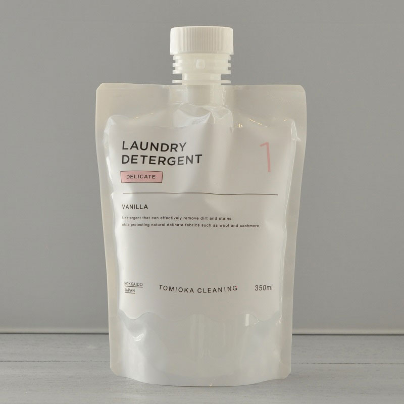 フレグランスバニラの香り正味量350ml用途毛・綿・絹・麻・合成繊維・レーヨン・キュプラ液性弱酸性成分界面活性剤(22% ポリオキシアルキレンアルキルエーテル)・繊維保護剤・保湿剤(グリセリン・トレハロース)・移染防止剤・抗菌剤・香料使用方法●洗濯機衣類をネットに入れ3分つけ置き後、洗濯(最短)、すすぎ1回、脱水(最短)。●手洗い3分つけ置き後、10回程押し洗いしてから排水。1回すすいでから脱水。風合重視:水30Lに30ml通常洗濯:水30Lに20ml手洗い:水10Lに10ml(手洗いがおすすめ)ブランドとみおかクリーニング備考●日本製●ポンプは別売り ●DELICATE おしゃれ着用洗剤TOMIOKA CLEANINGデリケートな素材を保護しながら効果的に汚れを落とせる洗剤デリケートな素材を保護しながら効果的に汚れを落とせる洗剤です。クリーニング店に出していた衣類もご家庭で。ウールやカシミア、シルクなど洗濯洗剤では洗濯できない衣類をご家庭でお洗濯していただけます。レーヨンやテンセルなどよりデリケートな素材の衣類も洗濯ができます。弱酸性なので、獣毛製品を優しく保護しながら洗えます。大切な衣類の型崩れ、縮み、色移りの心配はなし。洗濯のシワも気にならない。〇衣類の型崩れや縮みの心配なし 〇洗濯しわ、色移りナシ 〇ウール、カシミア、シルクやレーヨン・テンセルなどのデリケートな衣類も洗濯可能 〇水溶性・油溶性の汚れもしっかり落とします使用方法●洗濯機衣類をネットに入れ3分つけ置き後、洗濯(最短)、すすぎ1回、脱水(最短)。●手洗い3分つけ置き後、10回程押し洗いしてから排水。1回すすいでから脱水。風合重視:水30Lに30ml通常洗濯:水30Lに20ml手洗い:水10Lに10ml(手洗いがおすすめ)