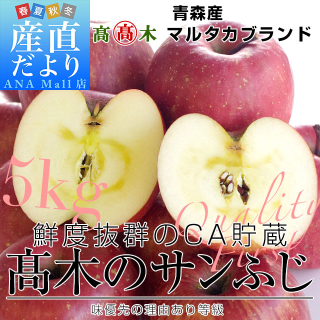 発送時期:販売を終了しました。 青森県高木りんご商店より産地直送します。 商品名:りんご(サンふじ) 内容量:5キロ(16玉から20玉) 産地:青森県 サンふじりんごは、甘味・酸味の絶妙バランス。歯ごたえもある、三拍子が揃った人気品種!とってもジューシーな果実は、とびっきりのおすすめ品種です。 <商品の規格・重量などについて> 当店で扱う青果物は、性質上、味わいや大きさ、重みに個体差がございます。そのため、重量が多少前後することや若干のバラつきがでることもございますのでその点はご了承ください。 <沖縄県と一部離島への配送について> 誠に勝手ながら、沖縄県や一部離島への配送は承っておりません。配送を希望される場合は、別途運賃・1380円をご請求いたしますのでご了承ください。 <クール発送について> 一部地域においては、クールでの発送ができない地域もございます。クールでの発送ができない地域のご注文は、承れない場合がありますので、ご了承ください。 <レビュー記入時期のお願い> レビュー記入のお願いが商品の発送よりも前にシステム上、自動的に発信されることがありますが、「商品到着後」にレビューを記載していただきますようお願いいたします。