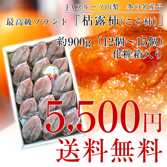 発送時期:12月11日から12月23日 山梨県より産地直送します。 名称: ころ柿(干柿) 原産地:山梨県 内容量:約900g(12個から15個入り) 武田信玄が奨励品として、古くから生産され、江戸時代には幕府にも献上されていた逸品。愛情たっぷりに仕上げた山梨松里の枯露柿(干し柿)をお届けします。 <商品の規格・重量などについて> 当店で扱う青果物は、性質上、味わいや大きさ、重みに個体差がございます。そのため、重量が多少前後することや若干のバラつきがでることもございますのでその点はご了承ください。 <沖縄県と一部離島への配送について> 誠に勝手ながら、沖縄県や一部離島への配送は承っておりません。配送を希望される場合は、別途運賃・1380円をご請求いたしますのでご了承ください。 <クール発送について> 一部地域においては、クールでの発送ができない地域もございます。クールでの発送ができない地域のご注文は、承れない場合がありますので、ご了承ください。 <レビュー記入時期のお願い> レビュー記入のお願いが商品の発送よりも前にシステム上、自動的に発信されることがありますが、「商品到着後」にレビューを記載していただきますようお願いいたします。