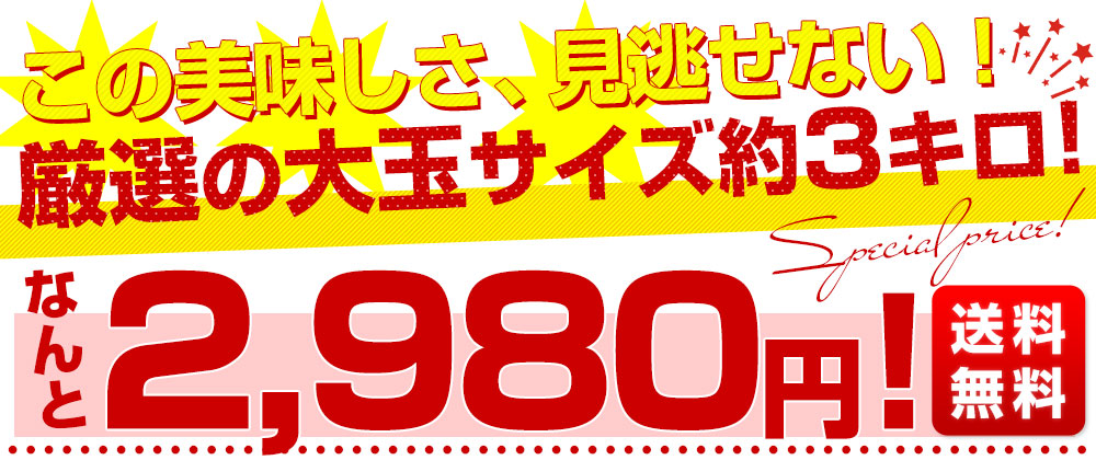 発送時期:2月2日から2月14日 東京都大田市場より直送します。 商品名:宮内いよかん 3Lから2Lサイズ 産地:愛媛県 内容量:約3キロ (10玉から12玉) 爽やかな甘みと、プリプリとした果肉が楽しめる「宮内いよかん」。大粒で味も香りも豊か。皮を剥いた途端、爽やかな香りが広がります。甘みと酸味のバランスも良く、飽きの来ない美味しさです。生産量トップクラスを誇る、愛媛県の伊予柑をぜひご賞味ください。 <商品の規格・重量などについて> 当店で扱う青果物は、性質上、味わいや大きさ、重みに個体差がございます。そのため、重量が多少前後することや若干のバラつきがでることもございますのでその点はご了承ください。 <沖縄県と一部離島への配送について> 誠に勝手ながら、沖縄県や一部離島への配送は承っておりません。配送を希望される場合は、別途運賃・1380円をご請求いたしますのでご了承ください。 <レビュー記入時期のお願い> レビュー記入のお願いが商品の発送よりも前にシステム上、自動的に発信されることがありますが、「商品到着後」にレビューを記載していただきますようお願いいたします。