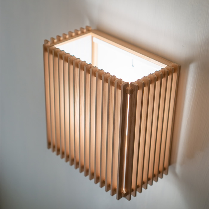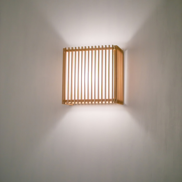 縦格子の内側にワーロンを張った、柔らかな光が広がるブラケット。