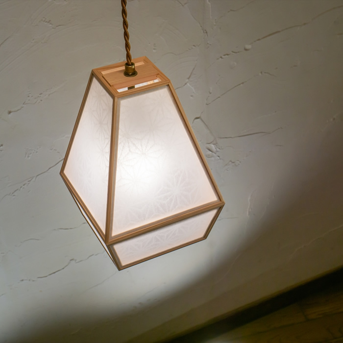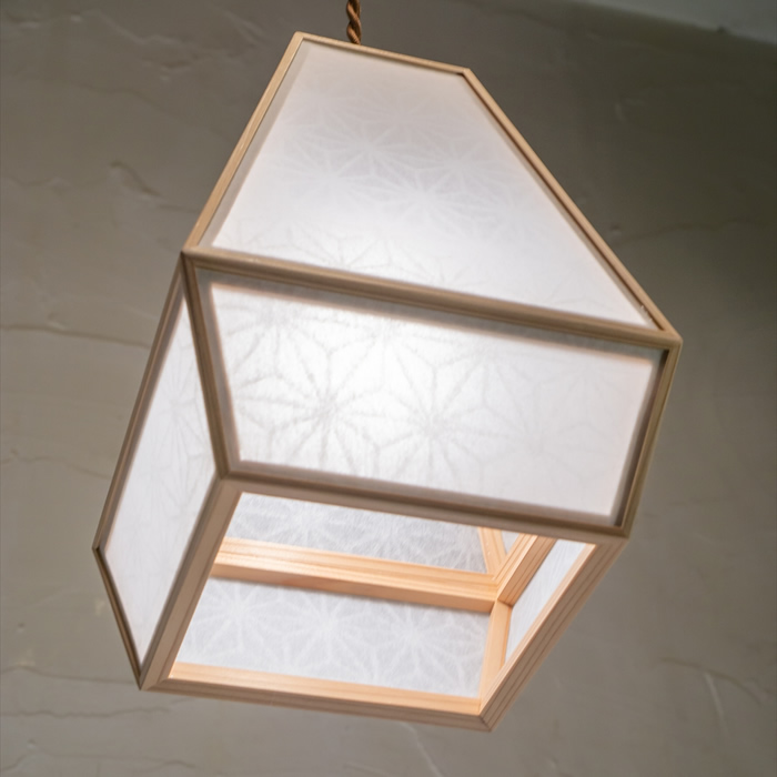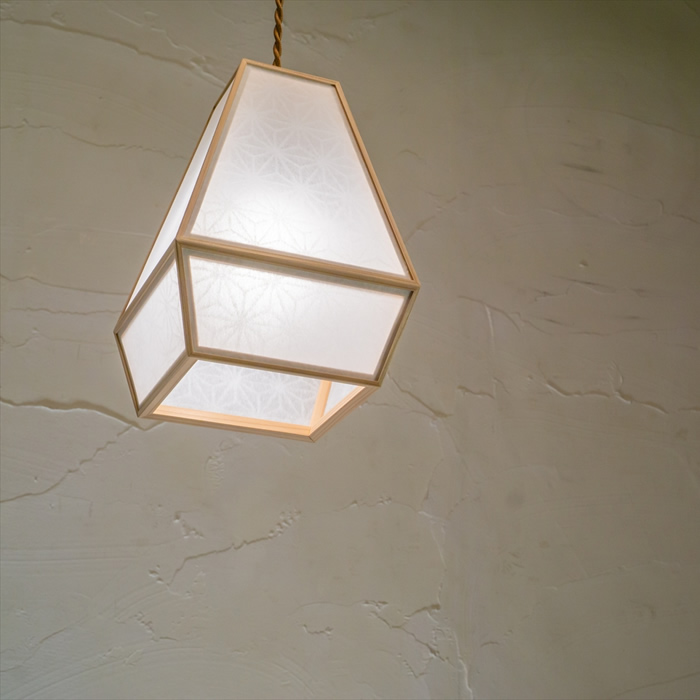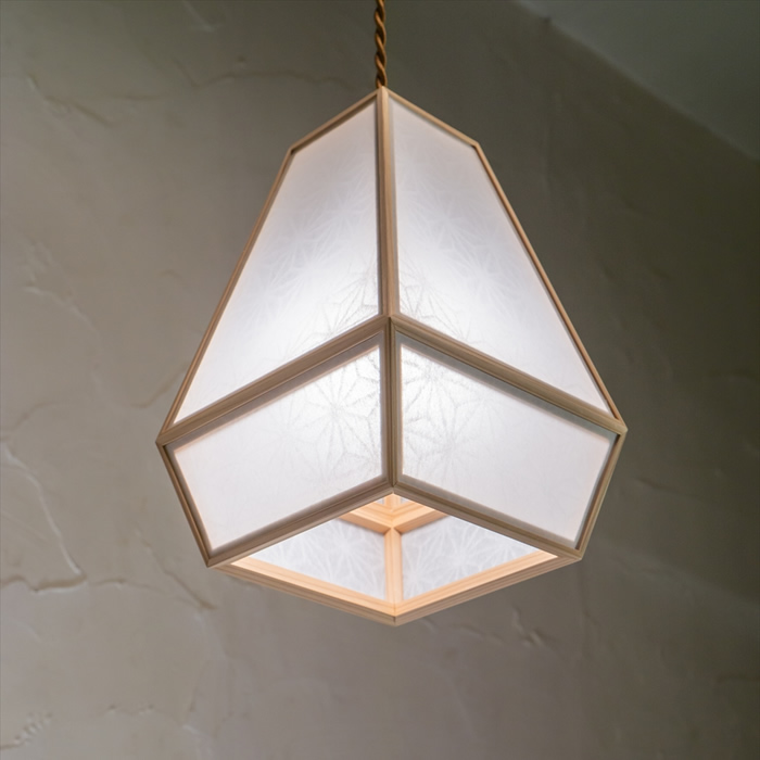 ダイアモンド型のシェード上に立ち上がった「木組み」が特徴のペンダント。