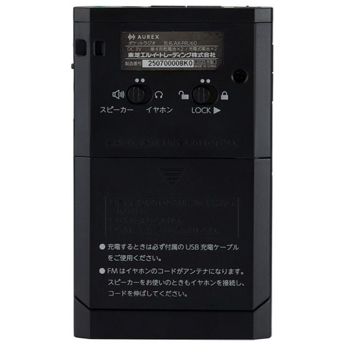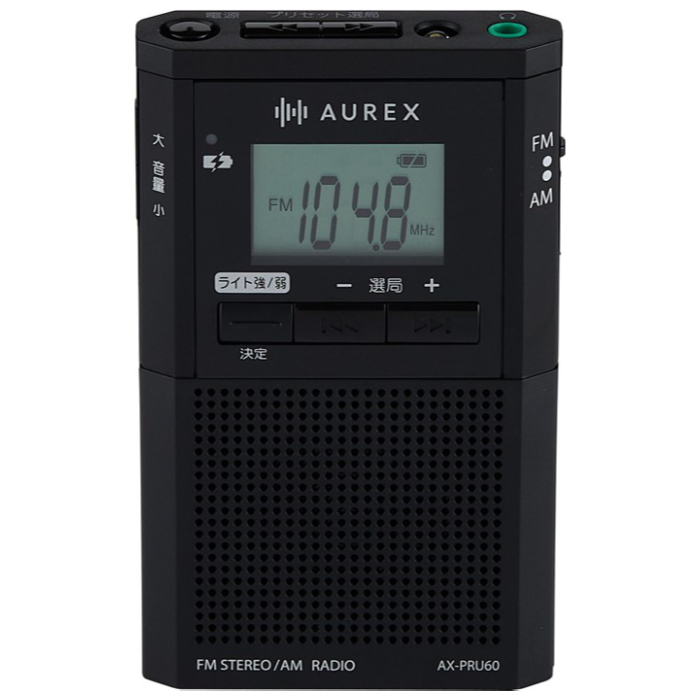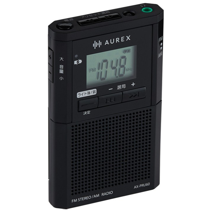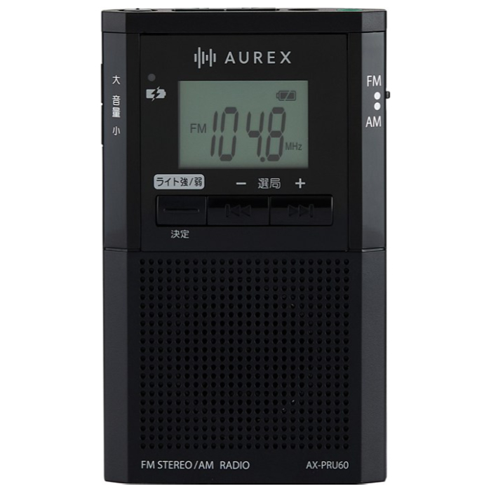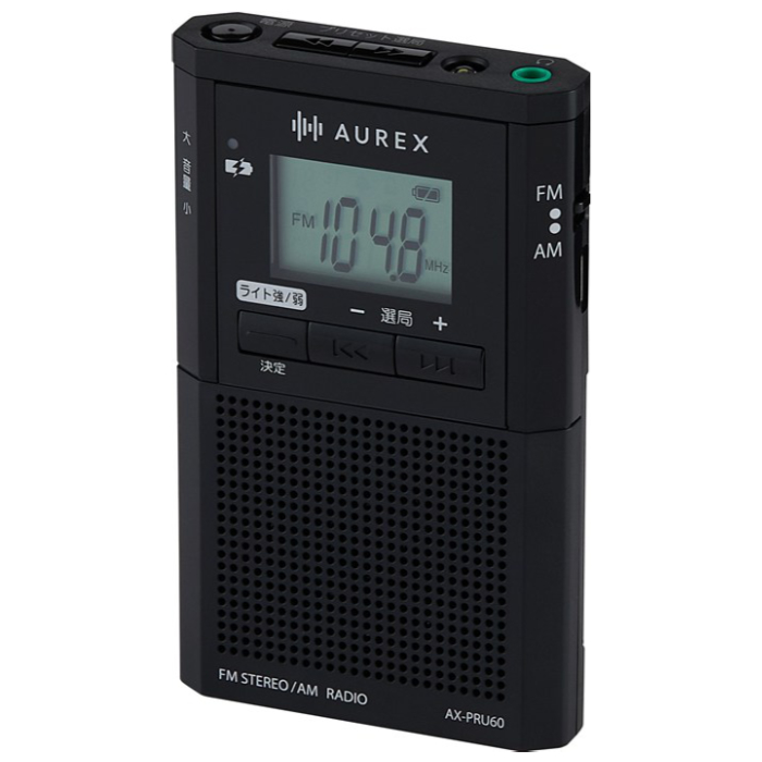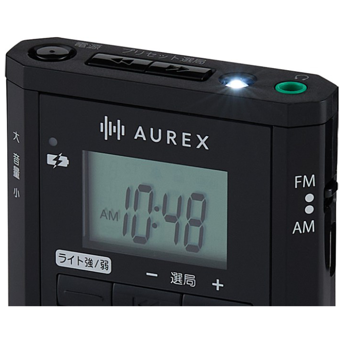 ■電池持続時間(充電池/イヤホン使用):FM受信 約32時間、AM受信 約38時間