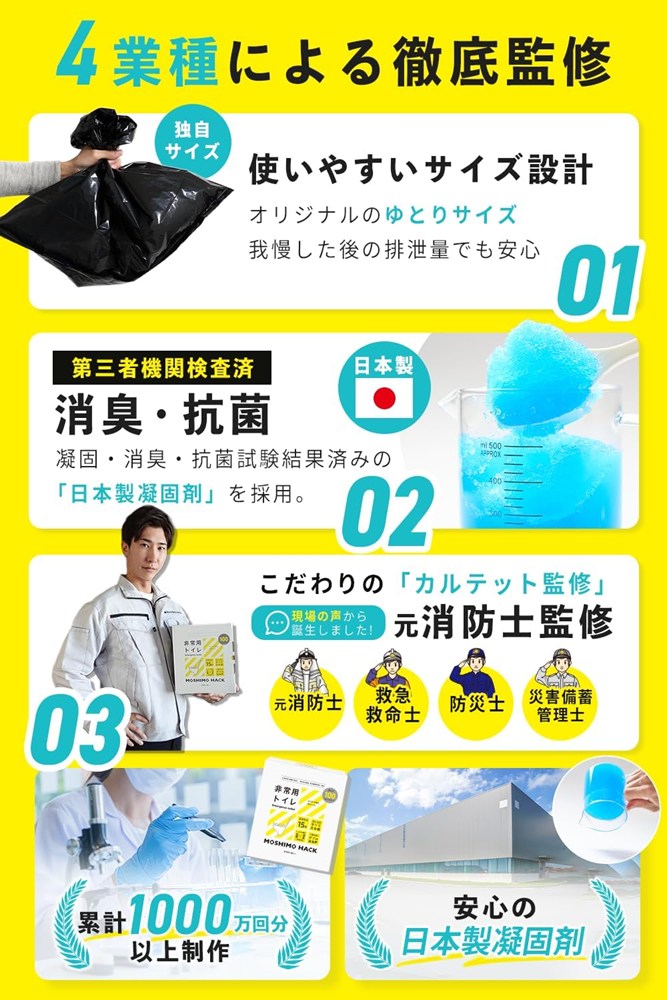 ■防災に関する知識を活かし震災時でもしっかり活用できるように開発した全て日本製かつ、使い易さを追求した非常用トイレです。