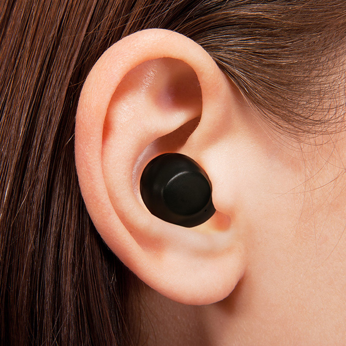 ■左右のヘッドホンをつなぐケーブルもなく、完全なワイヤレスで音楽を楽しめるイヤホン。