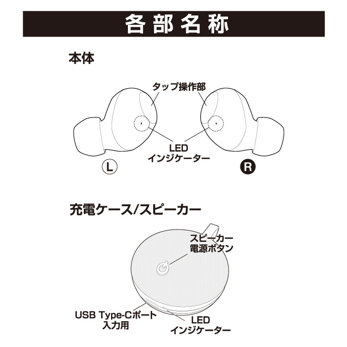 ■付属品:USB-A-Type-Cケーブル/イヤーピース(S/M/L)各2個