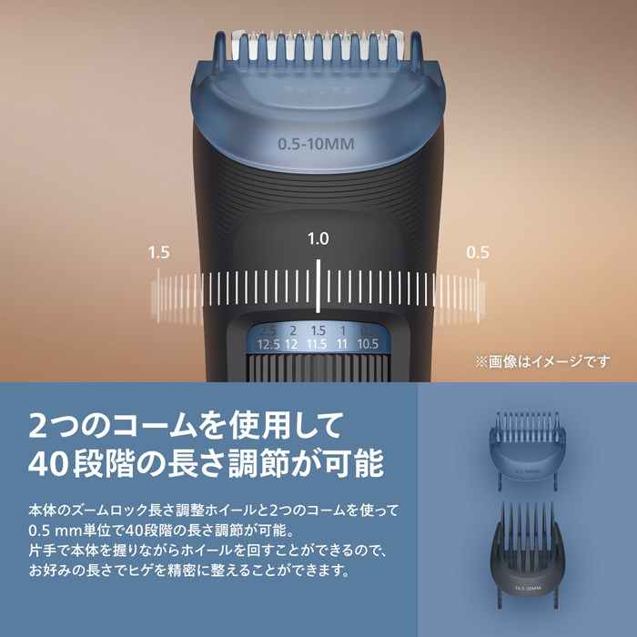 ■2つのコームを使用して40 段階のヒゲの長さ調節(0.5 mm~20 mm)が可能