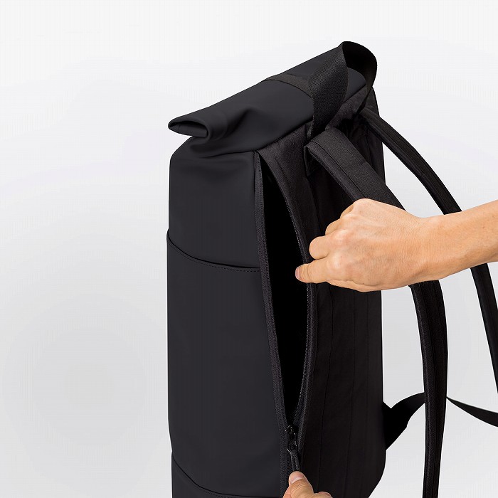 メイン開口部: マジックテープで簡単に開閉できるロールトップ仕様。収納量を調整できます