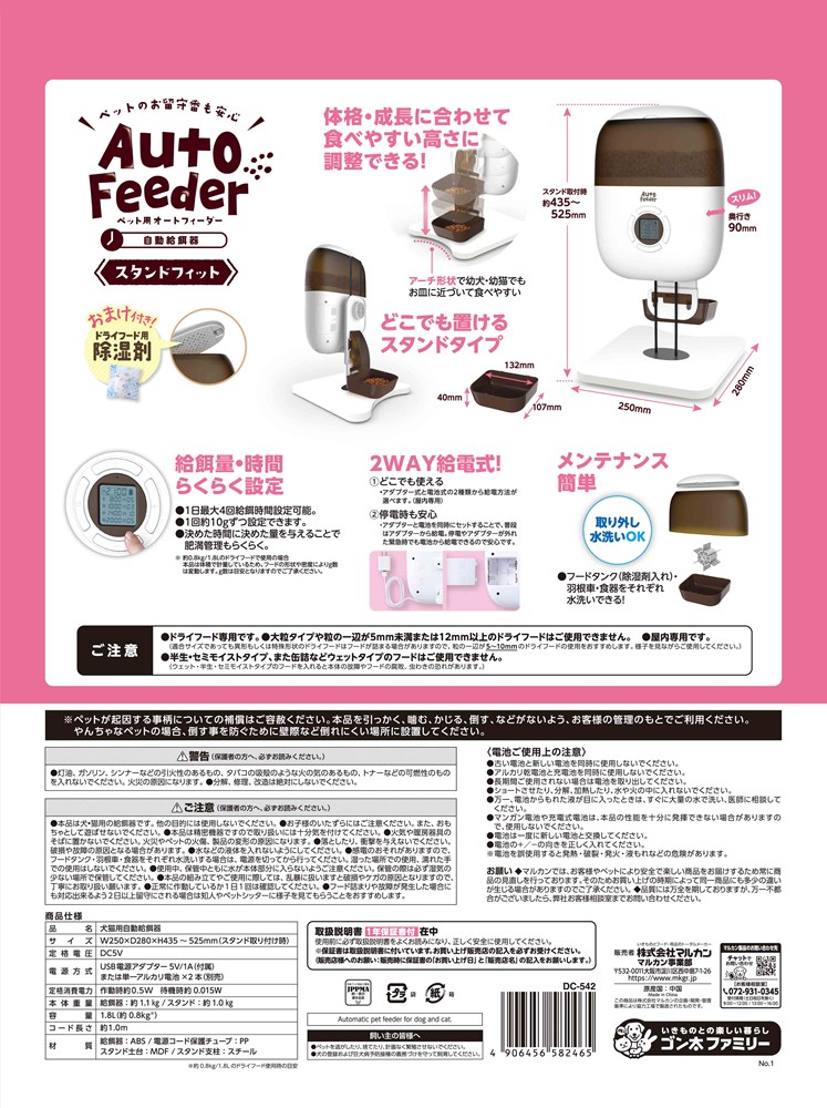 ■材質:給餌器/ABS、電源コード保護チューブ/PP、食器/ABS、スタンド土台/MDF、支柱/スチール