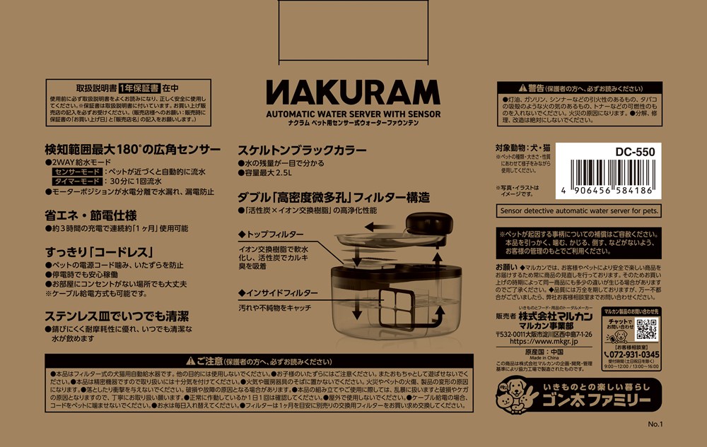 ■犬猫用の自動給水器で、ペットが近づくと水を流すセンサーモードと30分に1回の頻度で自動で水を流すタイマーモードがあります。