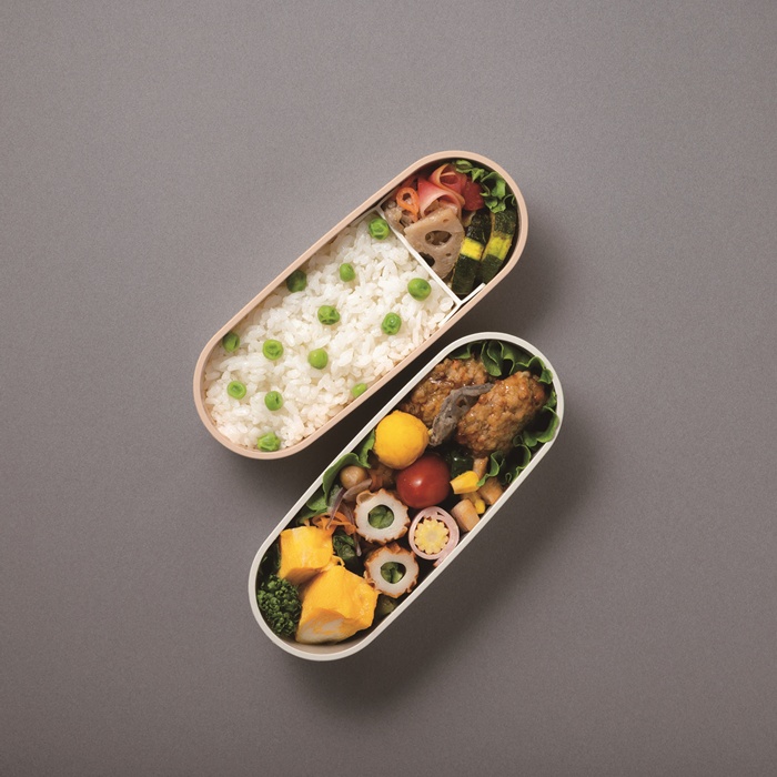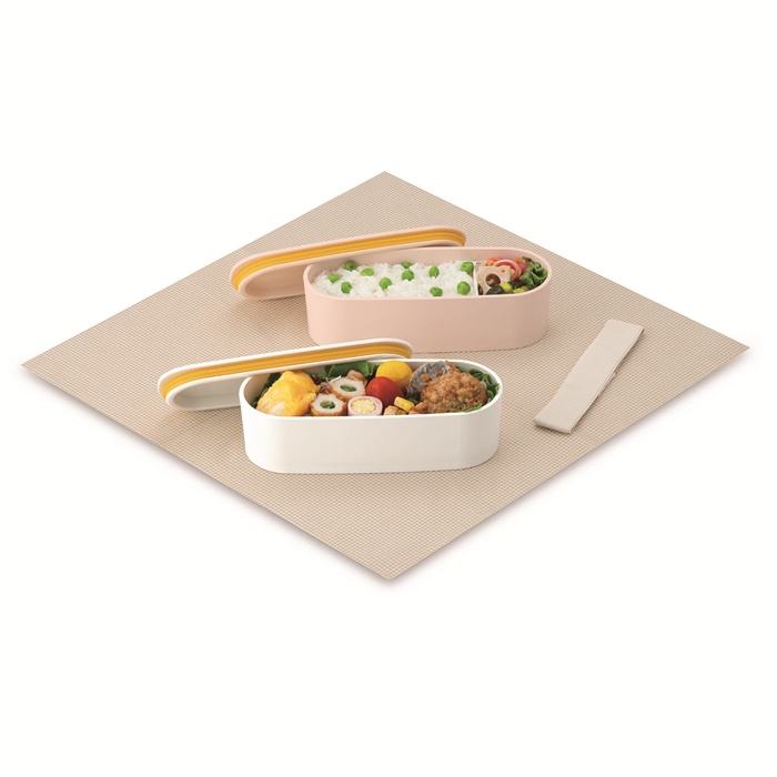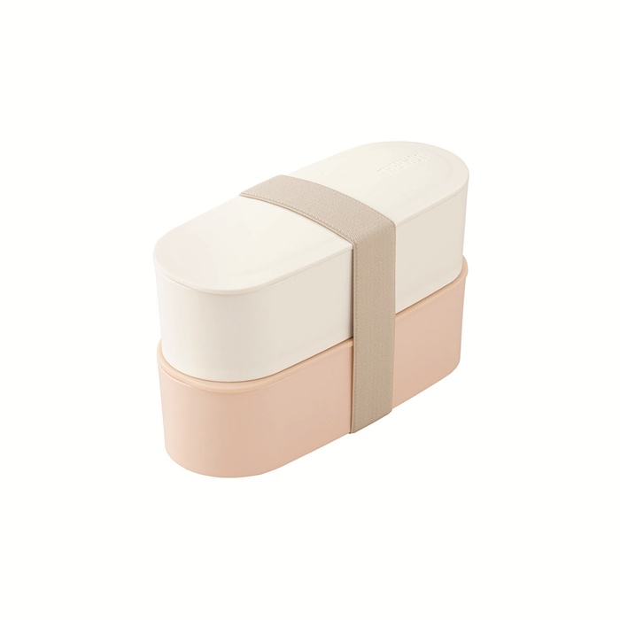 幅6.5cmのスリムサイズの2段式お弁当箱で、汁もれしにくいパッキン付きのフタが付いており、本体の内側には角がなく洗いやすい