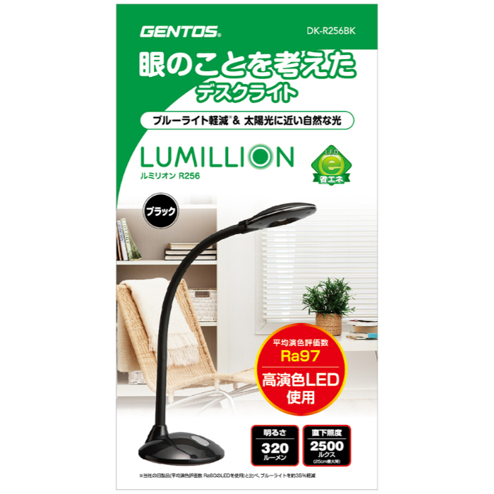 ブルーライト軽減・太陽光に近い光(Ra97)のデスクライトです。AC電源を使用。プッシュスイッチでオン・オフのみのシンプルな商品です。
