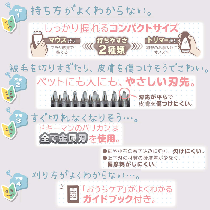 ■トリマーさんにヒアリングを行い、プロ目線からバリカン初心者にも持ちやすく、使いやすい商品にしました。