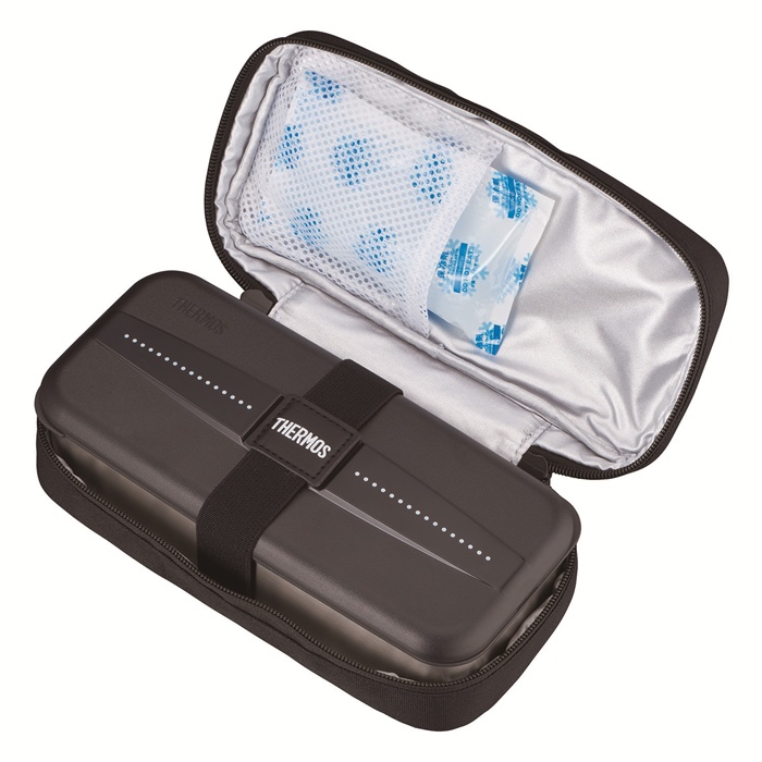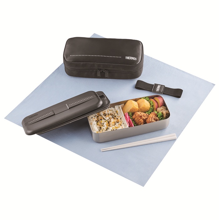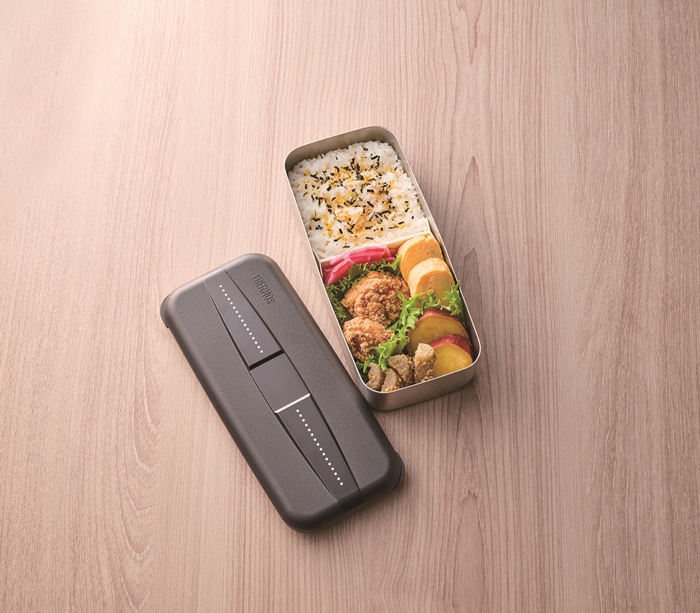 色移りやにおい移りしにくいステンレス製で、汁もれしにくいパッキン付きフタが付いており、断熱構造の保冷ケースも備わっている
