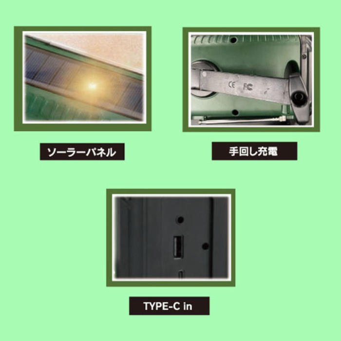 手回し充電機能 5V1.5 W