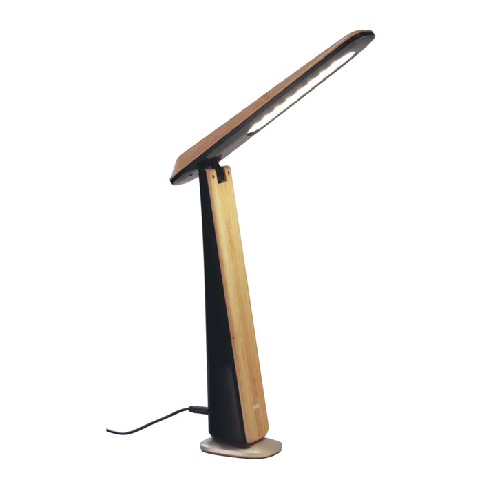 天然素材の竹を採用し、便利な機能を搭載したデスクスタンド。内蔵バッテリーにより、スマホへの給電可能。小型電子機器へ給電でき、停電時も内蔵バッテリーで約4時間点灯できる優れものです。また3色の調色切替、連続調光機能も付いたデスクスタンドです。