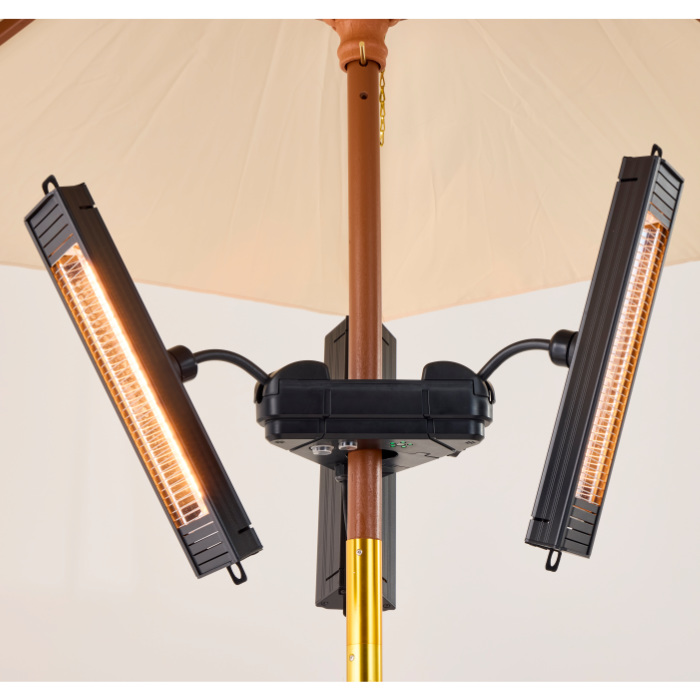 ◎既設のパラソルのポールに取り付ける電気式 赤外線ヒーターです。