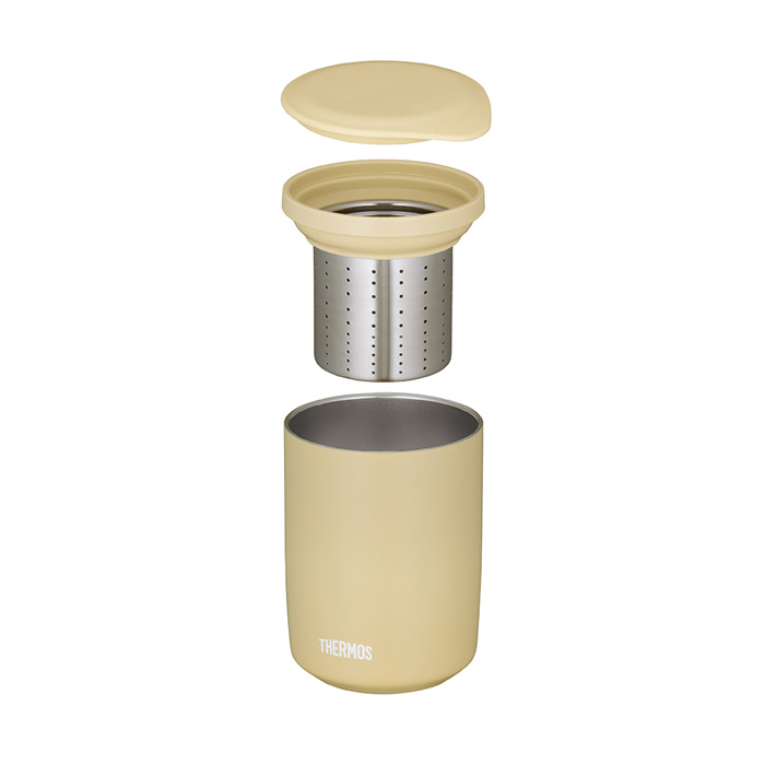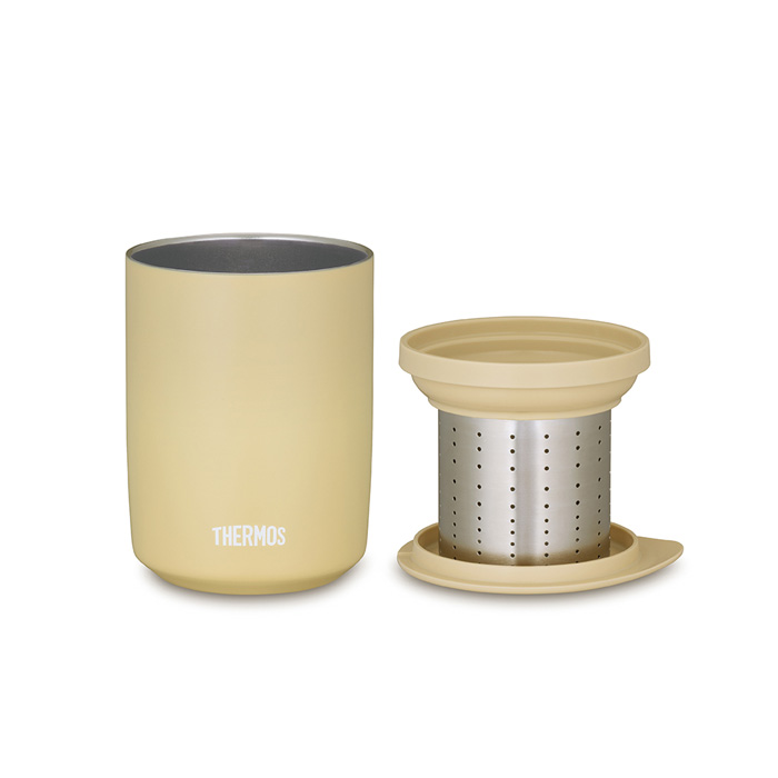 ■茶こし付きのタンブラーが新登場!作ったお茶を保温・保冷できる。各パーツ凹凸が少なく洗浄しやすい。食洗器対応。
