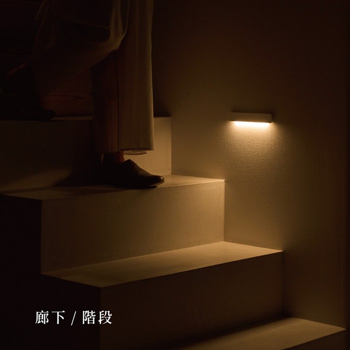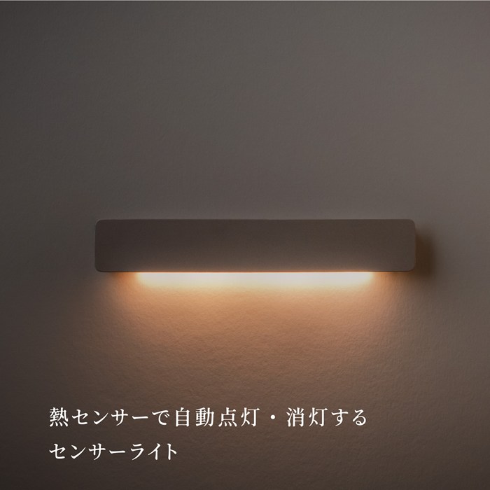 ■左右の動きに強い狭い通路に適したモデル。本体の左右にそれぞれセンサーが内蔵されており、両側から人の動きを感知し点灯します。本体の下部が発光し足元灯に適しています。