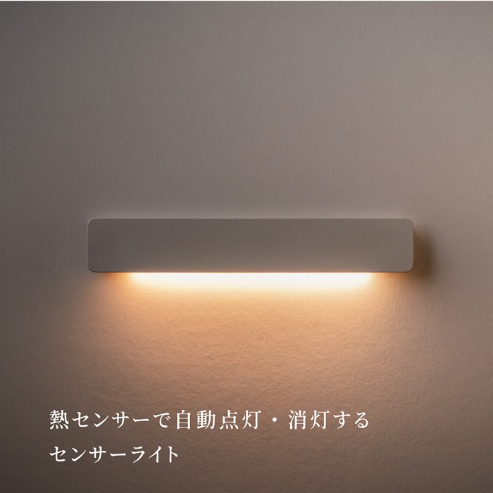 ■左右の動きに強い狭い通路に適したモデル。本体の左右にそれぞれセンサーが内蔵されており、両側から人の動きを感知し点灯します。本体の下部が発光し足元灯に適しています。