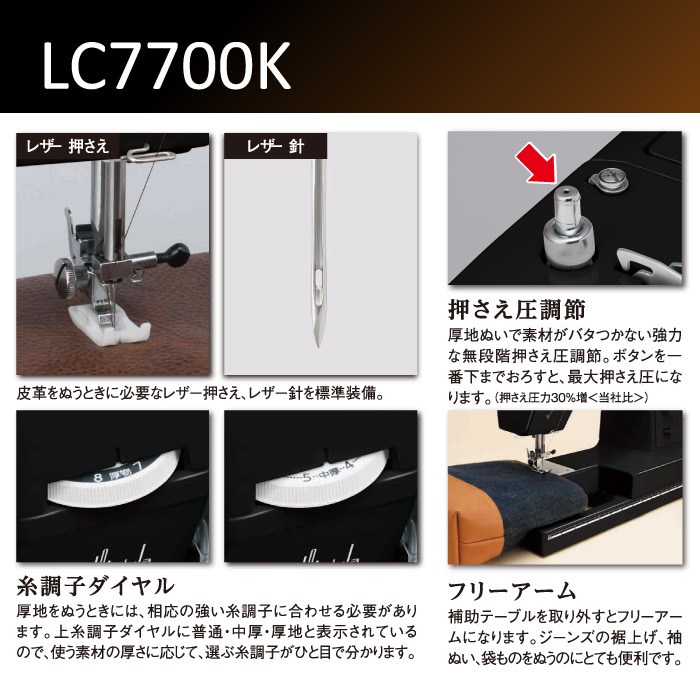 ■厚物ぬいでも素材がバタつかない強力な無段階圧力調節