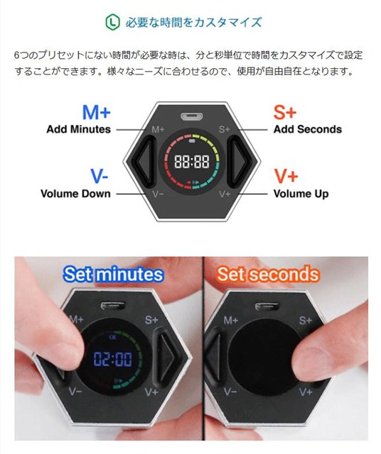 ●【カウントダウン】このポモドーロタイマーは日常の時間管理に最もよく使われる6つの時間の数字を正六角柱の横の表面に分布させ、ボタンを押さず、横に倒すだけで上に向いている数字で時間がカウントダウンが始まるという斬新なデザインです。最大99分59秒カウントダウン機能付き自閉症やADHDの子どもたちに非常に役に立ちます。