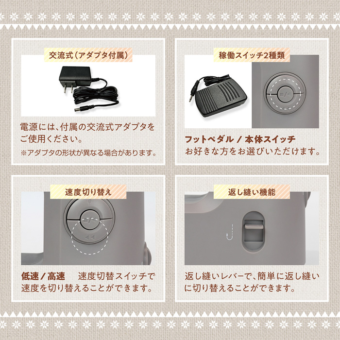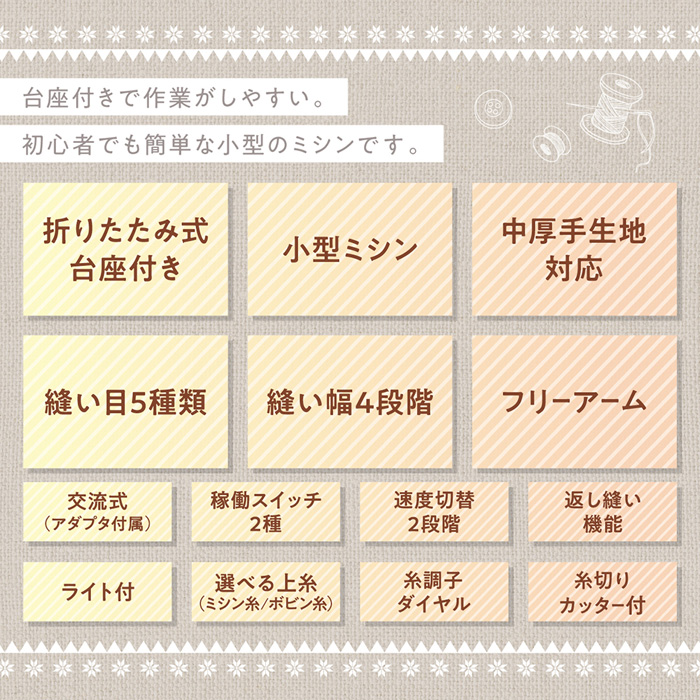 ■縫い目5種類からチョイス(ジグザグ縫いも可能)
