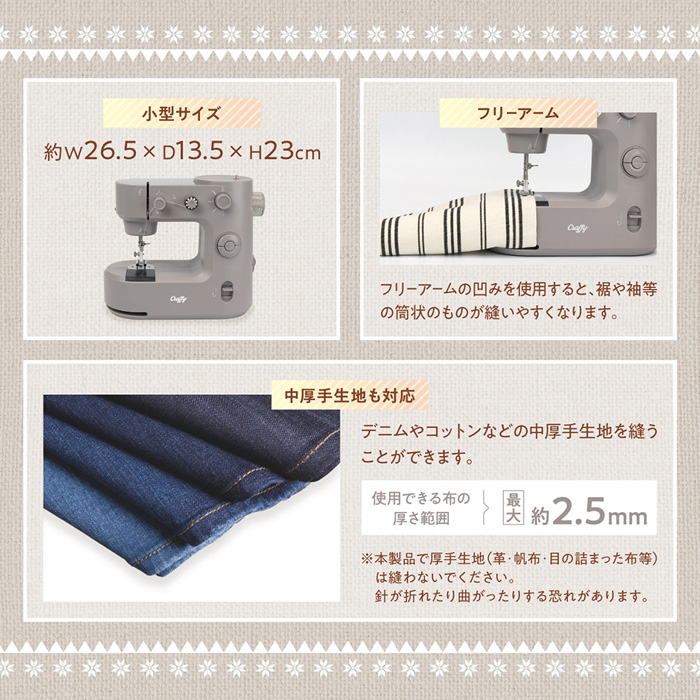 ■デニムやコットン等の中厚手生地もOK(最大2.5mm)