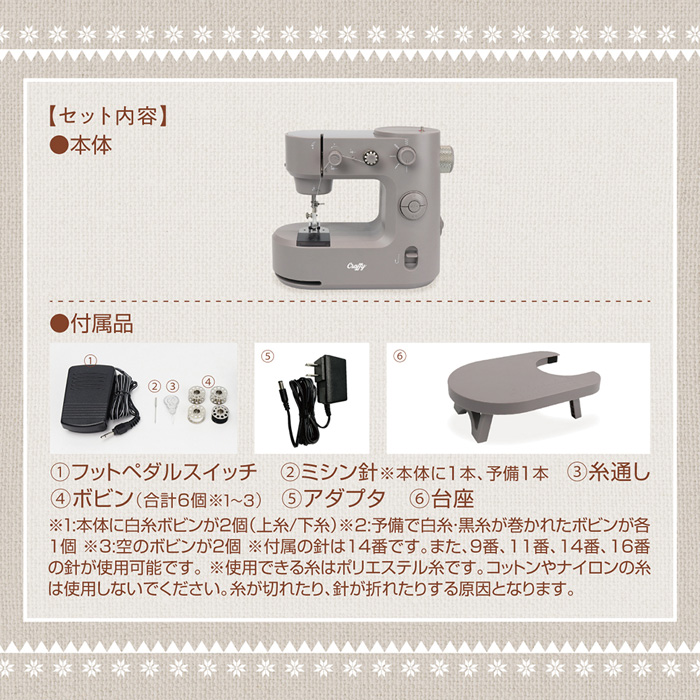 ■対応糸:ポリエステル糸 75~30番手