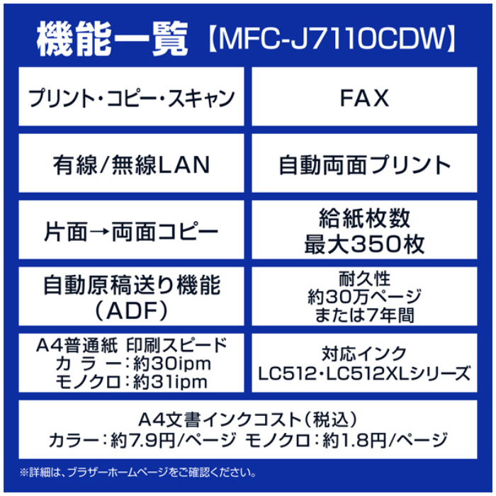 ●対応インクカートリッジ:LC512シリーズ(標準)、LC512XLシリーズ(大容量)