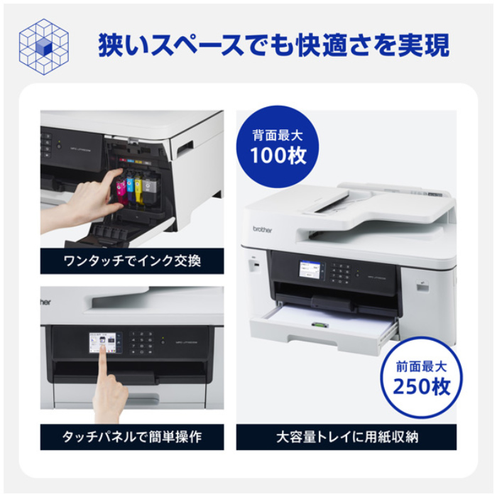 インク交換、用紙補充を本体前面で完結できるフロントオペレーションを採用。